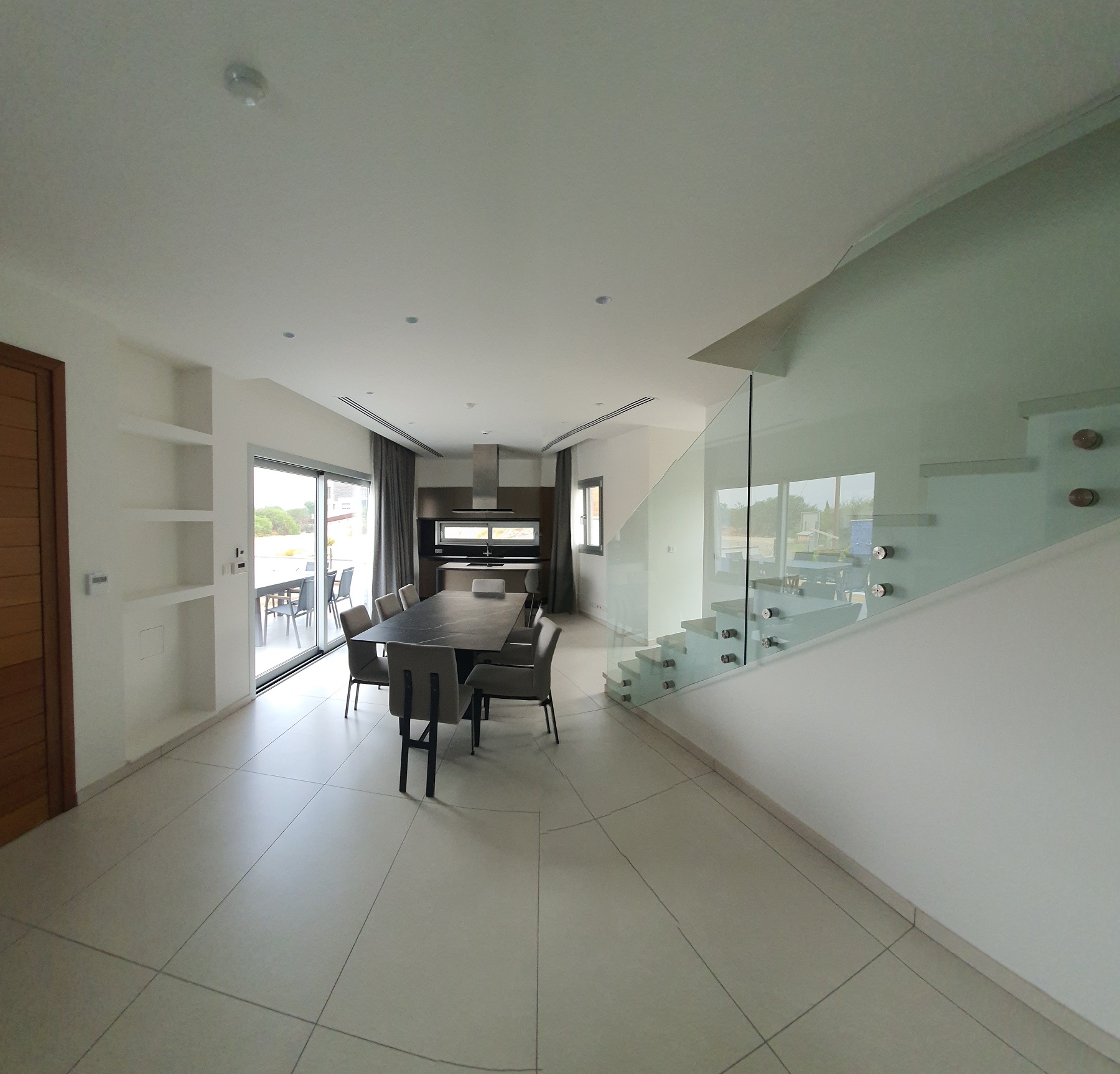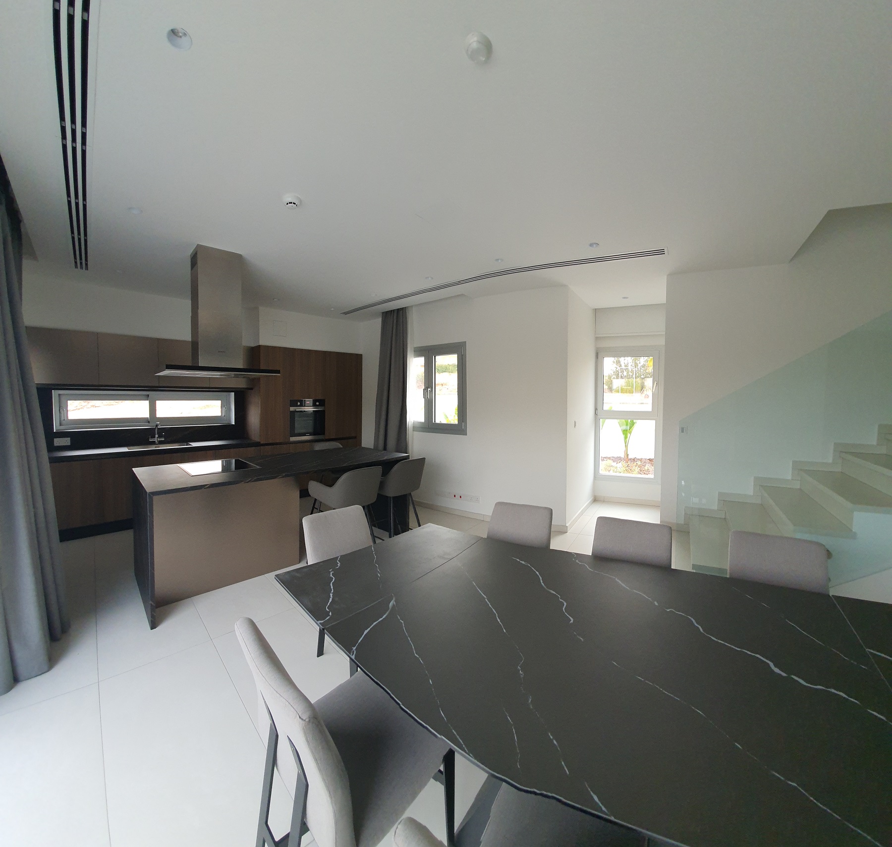 From the very first step inside, the villa creates a welcoming and refined atmosphere, enhanced by stylish furnishings and tasteful interior design. The ground floor presents a bright, open-plan layout that seamlessly connects the living area, kitchen, and dining space—ideal for daily living as well as hosting gatherings. A guest bathroom adds practicality to this level.