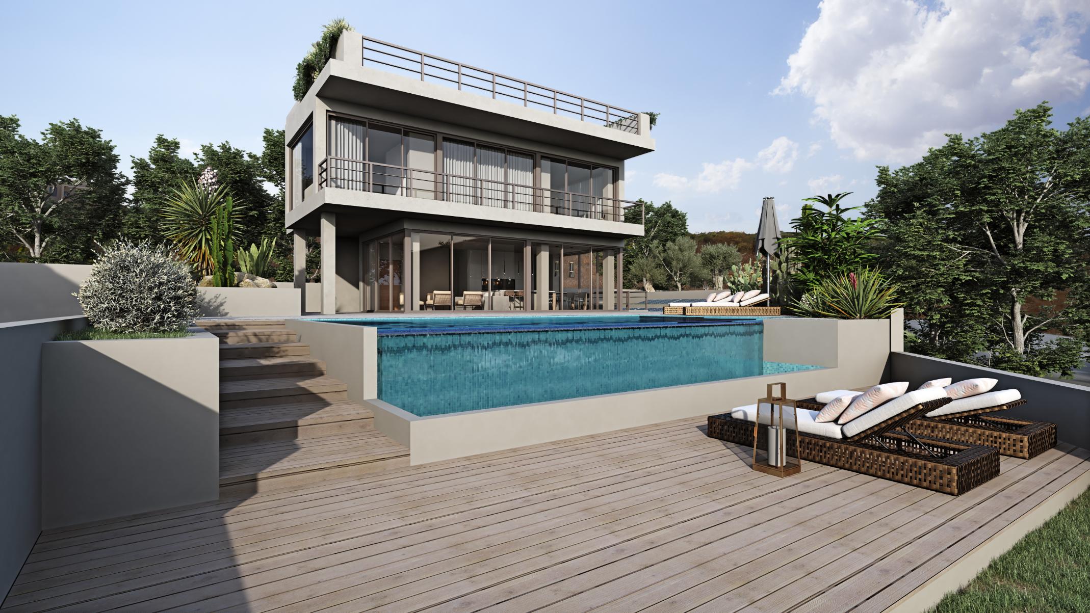 Set in the tranquil hills above Protaras, this elegant three bedroom villa combines contemporary luxury with natural beauty. Designed with energy efficiency in mind, it features open plan living spaces, premium finishes, and expansive glass openings that frame breathtaking sea views. The villa includes a private infinity pool, landscaped garden, and a rooftop terrace ideal for relaxation or entertaining. Just minutes from beaches, shops, and the upcoming Protaras Marina, it offers the perfect balance of privacy and convenience.