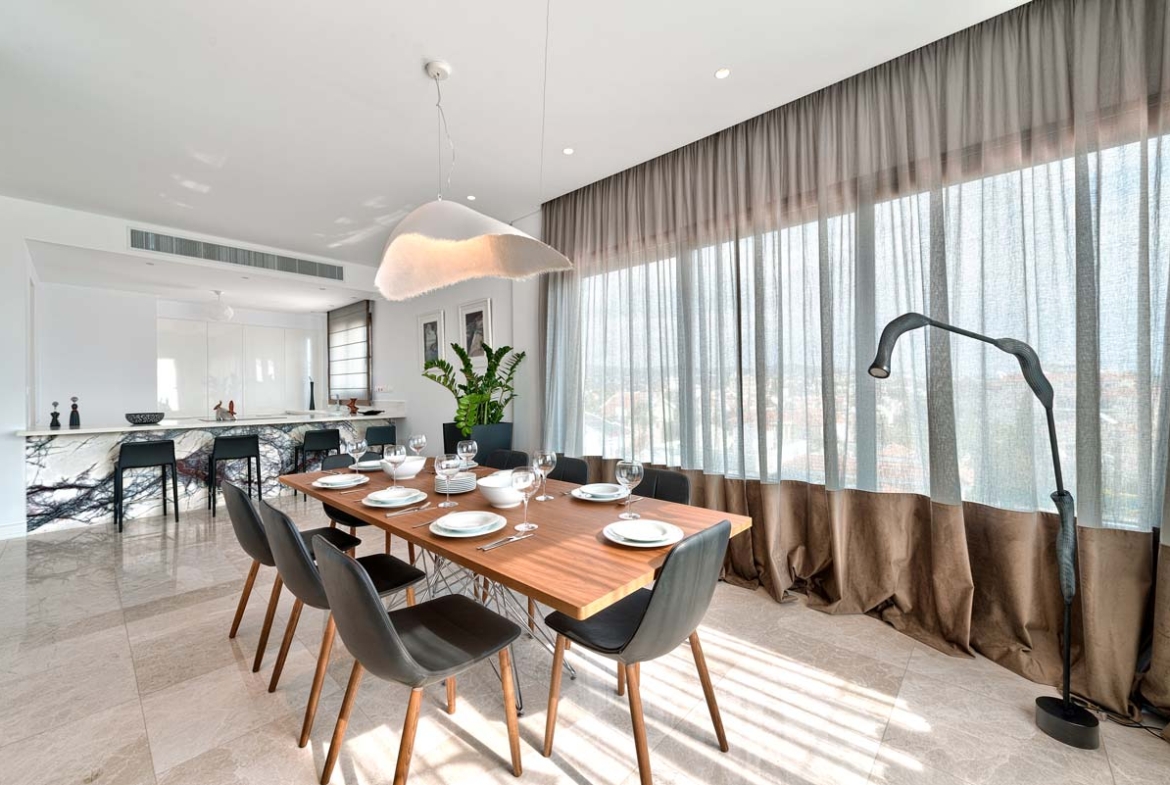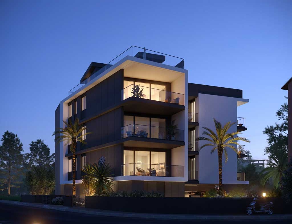 This opulent gated residential complex is situated 700 metres from the sea and the well-known eucalyptus forest Dassoudi in Limassol’s tourist district Germasogeia.