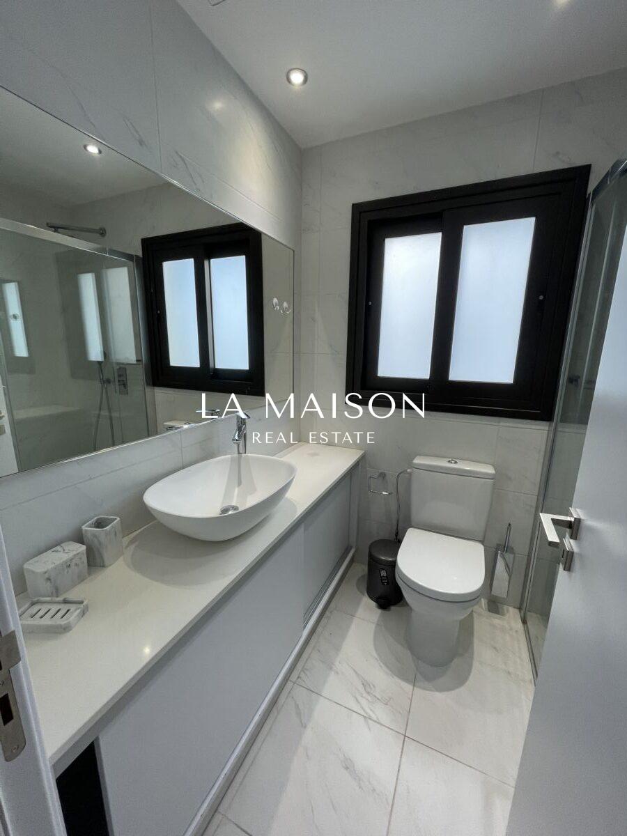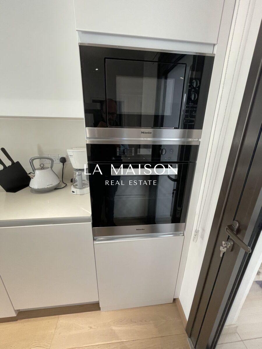 The home is fully furnished with luxurious Italian furniture and state-of-the-art appliances, including two Samsung smart TVs, offering both practicality and elegance.