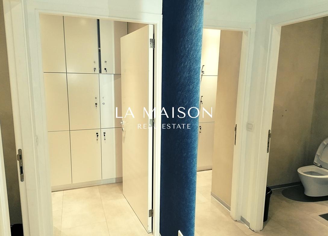 Locker room with shower