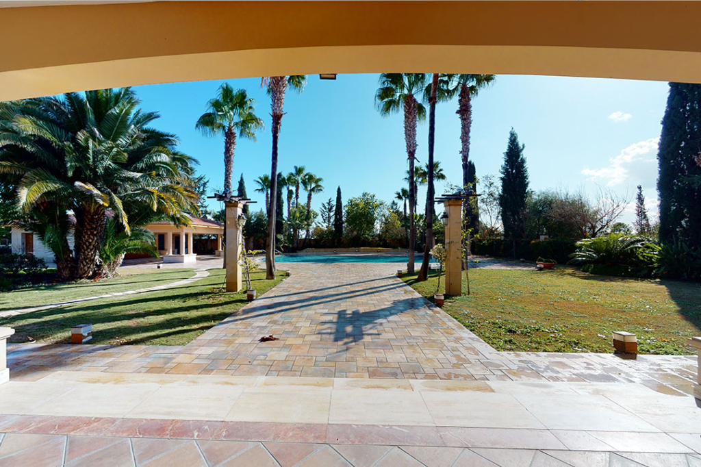 The villa located  on a hill at Tseri municipality. The ground floor comprises of a kitchen, living rooms, library, office space, lift and bathroom while the first floor comprises of 4 bedrooms all with en-suite, fire place and wardrobe. The semi-basement has a dressing room, jacuzzi, shower and toilet, kitchen, living room and play room. Total villa covered area 1,150m2. Externally there is a yard,...