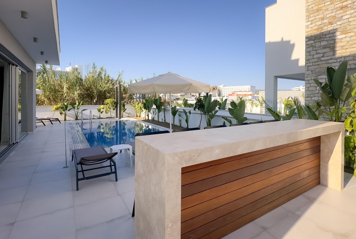 This villa, situated in the heart of Ayia Napa, offers the perfect blend of convenience and tranquility. In a gated complex of just eight villas, residents can enjoy the benefits of a detached home in a central location. With easy access to both the vibrant atmosphere of Ayia Napa and the serene surroundings of the villa, residents can enjoy the best of both worlds. The villa is meticulously designed with sophisticated materials that harmonize with the island’s environment, ensuring both beauty and functionality. With leisure spaces, a fourth bedroom, and a jacuzzi on the lower level, as well as spacious living areas and bedrooms, residents can indulge in luxurious living. The villa also comes fully furnished with modern appliances for ultimate comfort and convenience.