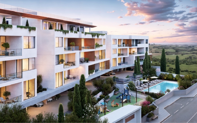 This stunning new residential community is nestled in the peaceful hills of Germasogeia, Limassol. Featuring seven elegantly designed apartment blocks, the project combines modern urban living with the calm of nature through its thoughtfully developed internal infrastructure. This 3 storey apartment building is currently available for sale, offering a variety of 1 to 3 bedroom apartments. Perched on the Limassol hills, it boasts breathtaking views of the sea, horizon, and city skyline. This new development is an ideal opportunity for both comfortable living and smart investment.