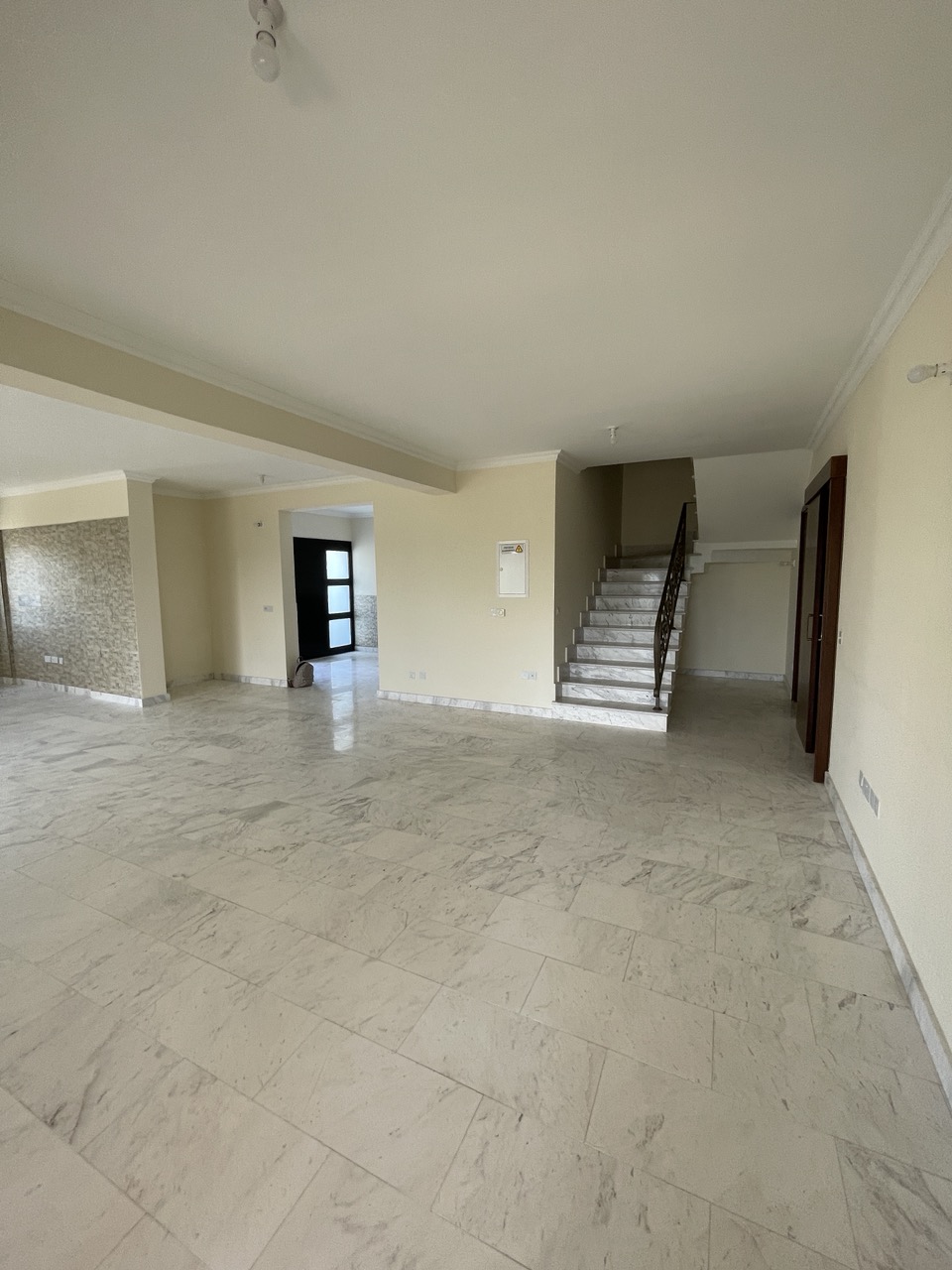 • Living & Dining: Open-plan layout with marble floors
