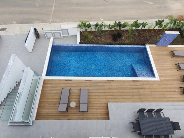 Situated in Engomi, a vibrant residential suburb of Nicosia, these residences boast a prime location overlooking a beautiful public park. Engomi offers numerous amenities, including restaurants, coffee shops, hotels, embassies, supermarkets, and a new casino, making it popular with professionals, young families, and students. Positioned between the University of Nicosia and the European University and within walking distance from the city center, the gated buildings feature modern architecture and innovative design. Each building comprises two 2-bedroom apartments on the first four floors and a 4-bedroom penthouse with a private roof garden on the fifth floor. The design maximizes privacy with no common walls between apartments and offers unobstructed park views. Floor-to-ceiling glass doors extend the floor space and add a contemporary aesthetic.