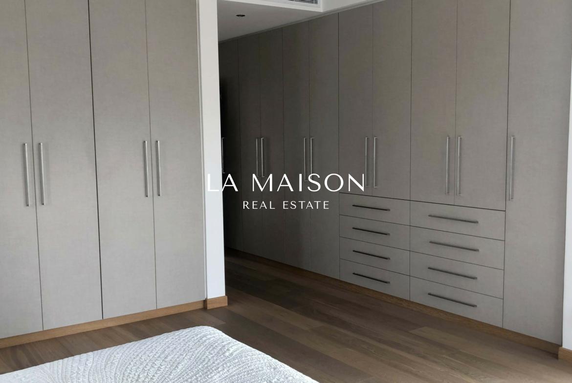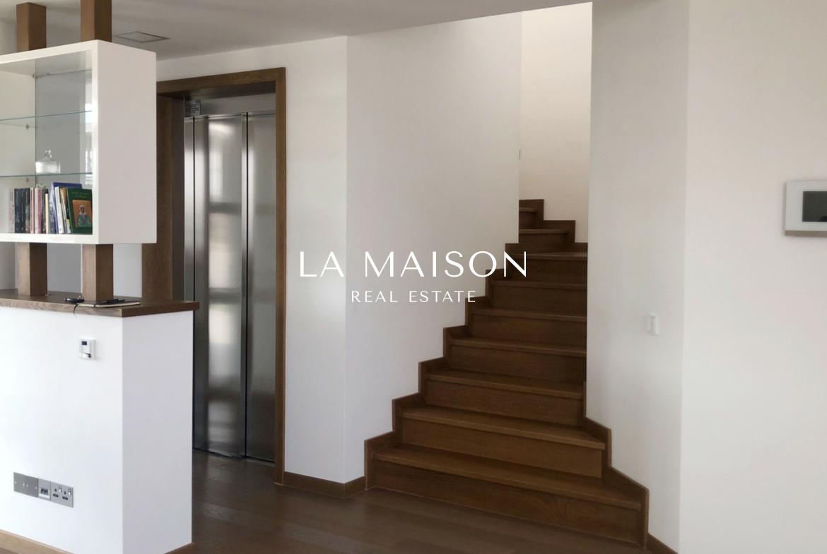 It consists of three levels also serviced by a spacious luxury internal lift. On the ground floor there is a living and dining room, separate spacious kitchen with living and dining areas, a guest toilet and a large covered veranda. Upstairs there is a large master en-suite bedroom and three other bedrooms – two with sharing bathroom and one with an en-suite and a large veranda. In the basement, there is laundry room, an en-suite maid’s room with small kitchenette and external independent access, a large storage room, a spacious playroom, a mechanical room and a large veranda.