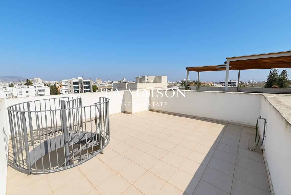 A private roof garden accessed via an internal staircase is used exclusively by the penthouse.