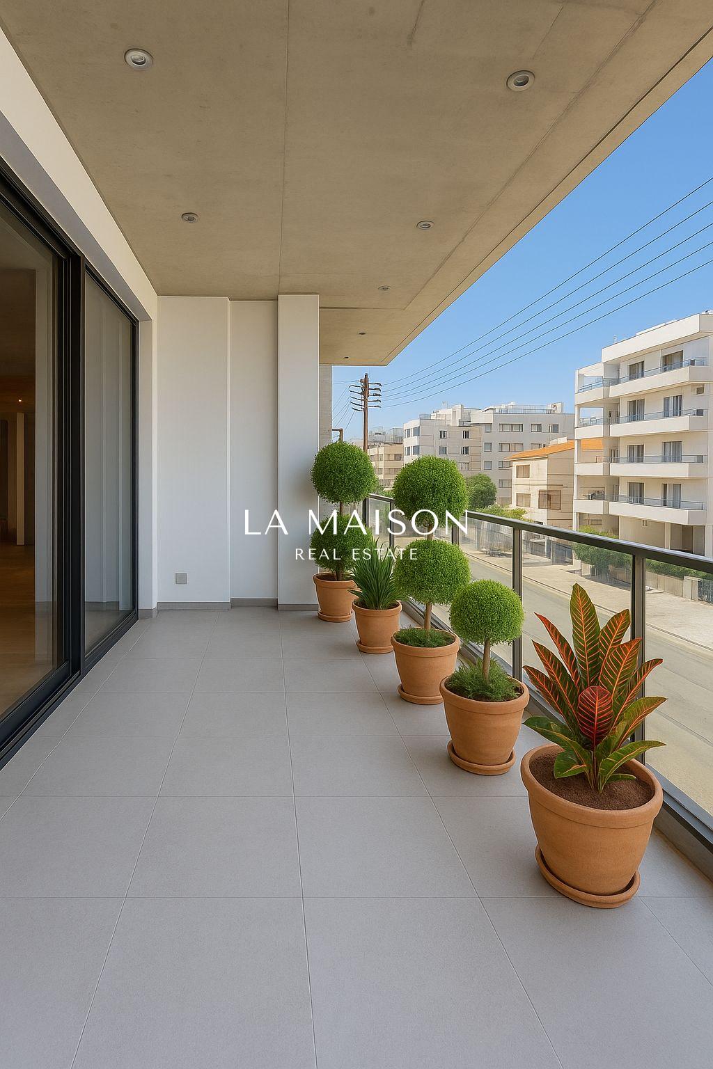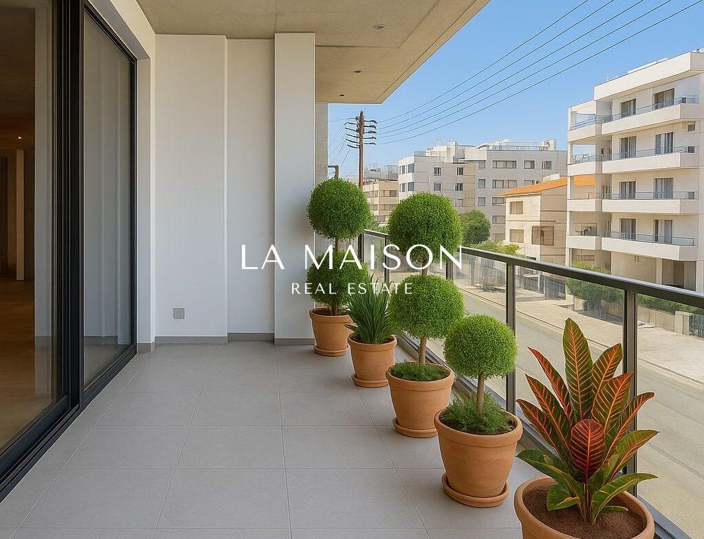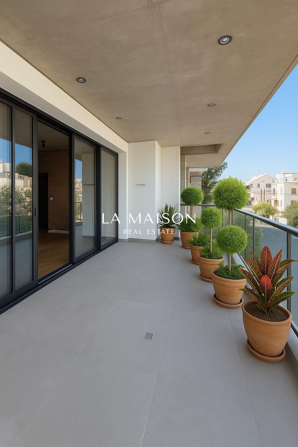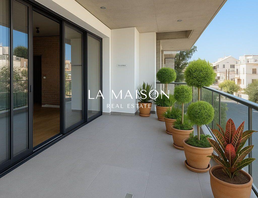 A brand-new modern residence located in one of Engomi’s most desirable neighborhoods, combining contemporary architecture with top-quality finishes and smart home comfort. This spacious two-bedroom apartment offers a total internal area of 95 sqm plus 20 sqm of covered verandas, providing a perfect balance between comfort, functionality, and style. The apartment features an open-plan living area with large floor-to-ceiling openings that flood the space with natural daylight and extend seamlessly onto the private balcony. The modern Italian-designed kitchen integrates elegantly with the dining and living areas, creating a fluid and inviting environment ideal for modern living. It includes three toilets and two showers, designed with large ceramic tiles, European sanitary ware, and sleek modern fixtures. Premium specifications include solid wood parquet flooring, underfloor heating with remote control, energy-efficient Daikin cooling, photovoltaic system , and an individual solar water heater. The apartment is fitted with LED ceiling and track lighting, high ceilings with modern linear design, thermal and sound insulation, thermal double-glazed aluminum frames, tempered glass balcony handrails, UV-resistant glazing, and smart mirrors. Security features include a camera system, controlled building access, and private storage with covered parking. The development also offers landscaped common areas with plants, providing an elegant, sustainable, and peaceful environment. This residence sets a new standard of living in Engomi, offering a warm, elegant, and functional environment with cutting-edge energy efficiency and premium materials, ideal for professionals, couples, or small families seeking a refined lifestyle in a quiet yet central location just minutes away from universities, embassies, and the city center.