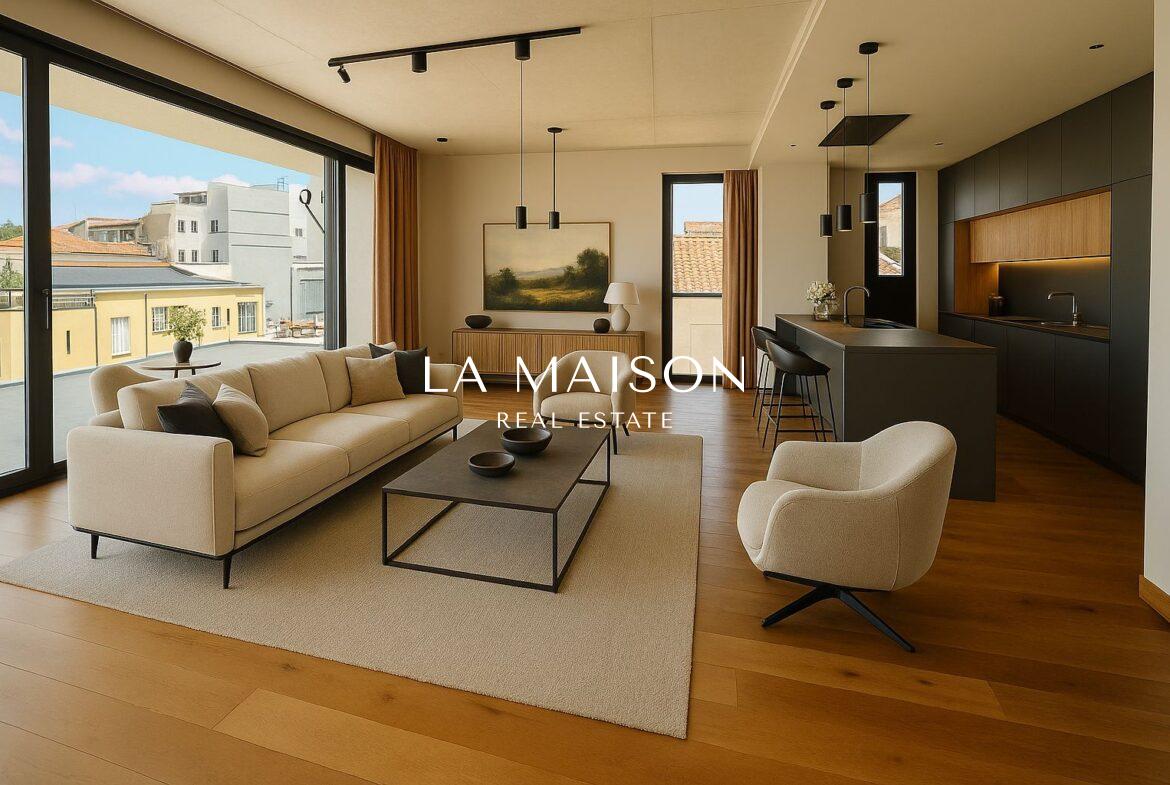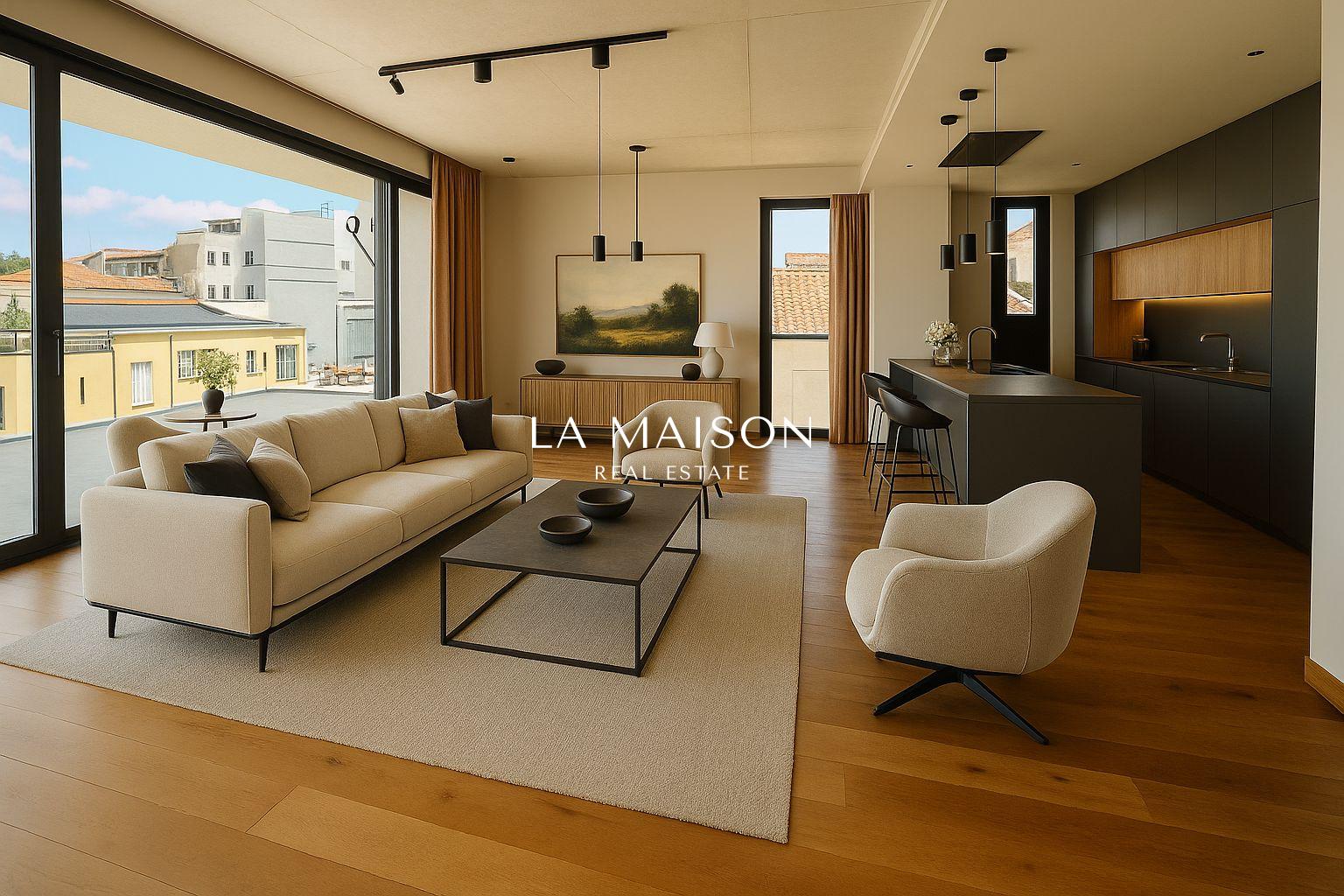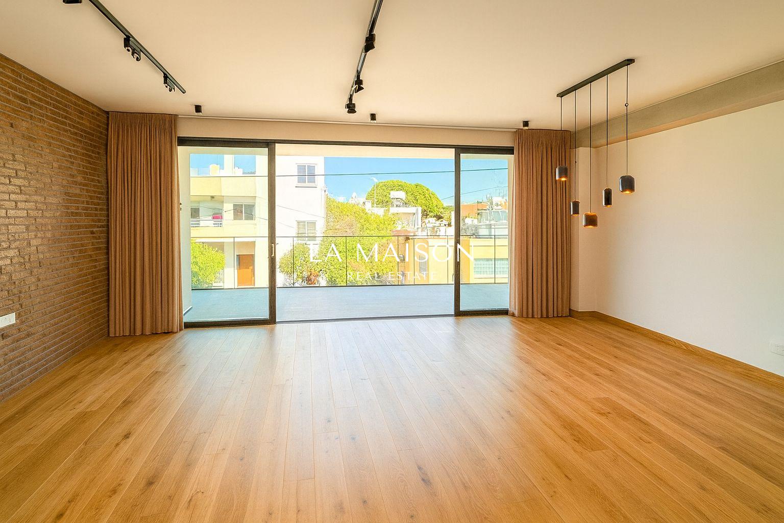 A brand-new modern residence located in one of Engomi’s most desirable neighborhoods, combining contemporary architecture with top-quality finishes and smart home comfort. This spacious two-bedroom apartment offers a total internal area of 95 sqm plus 20 sqm of covered verandas, providing a perfect balance between comfort, functionality, and style. The apartment features an open-plan living area with large floor-to-ceiling openings that flood the space with natural daylight and extend seamlessly onto the private balcony. The modern Italian-designed kitchen integrates elegantly with the dining and living areas, creating a fluid and inviting environment ideal for modern living. It includes three toilets and two showers, designed with large ceramic tiles, European sanitary ware, and sleek modern fixtures. Premium specifications include solid wood parquet flooring, underfloor heating with remote control, energy-efficient Daikin cooling, photovoltaic system , and an individual solar water heater. The apartment is fitted with LED ceiling and track lighting, high ceilings with modern linear design, thermal and sound insulation, thermal double-glazed aluminum frames, tempered glass balcony handrails, UV-resistant glazing, and smart mirrors. Security features include a camera system, controlled building access, and private storage with covered parking. The development also offers landscaped common areas with plants, providing an elegant, sustainable, and peaceful environment. This residence sets a new standard of living in Engomi, offering a warm, elegant, and functional environment with cutting-edge energy efficiency and premium materials, ideal for professionals, couples, or small families seeking a refined lifestyle in a quiet yet central location just minutes away from universities, embassies, and the city center.