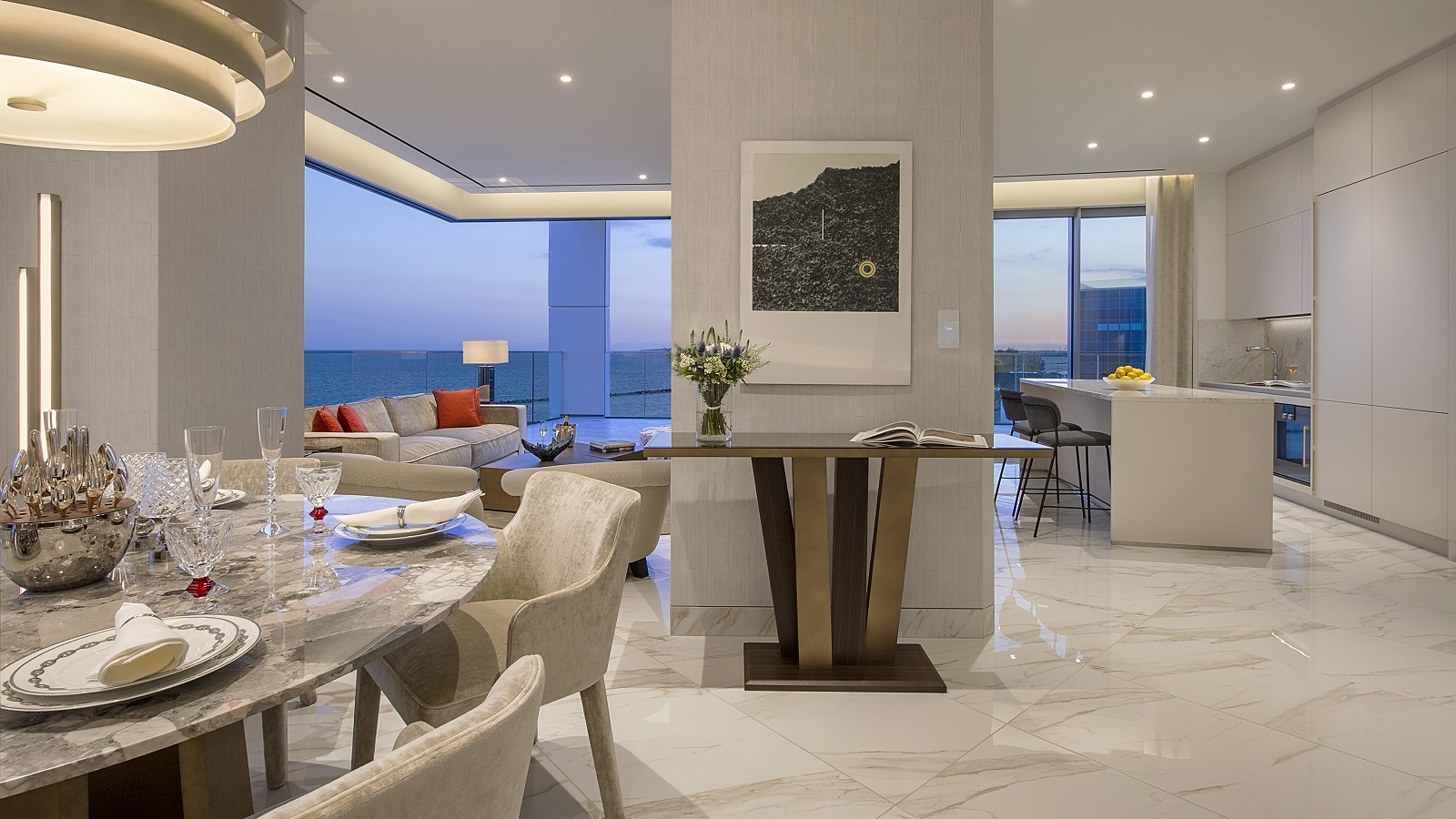 This building seamlessly melds the captivating allure of upscale coastal living with the elegance of urban sophistication, showcasing remarkable design ingenuity and unmatched levels of refinement.