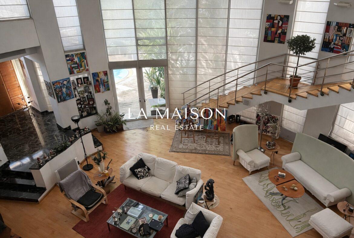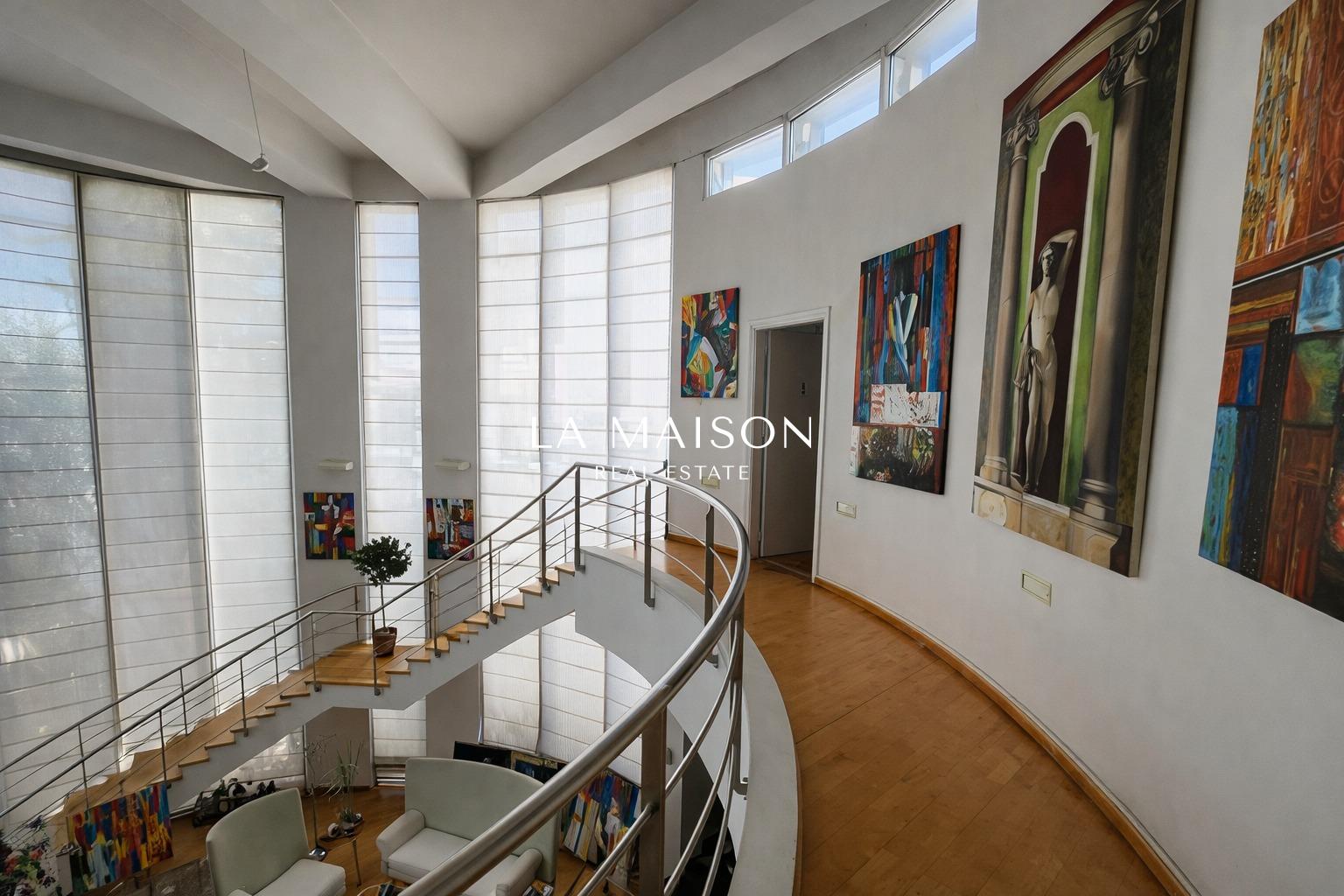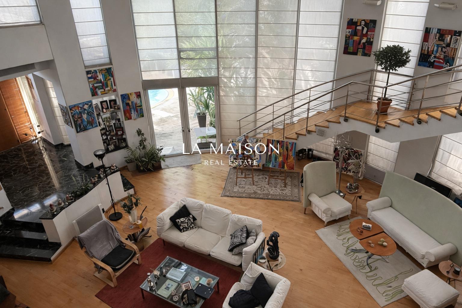 Internal circulation is served by a central internal staircase connecting all levels. Externally, the residence is complemented by a beautifully landscaped leisure area, featuring a private swimming pool and multi-level gardens adorned with ornamental planting, creating a serene and secluded environment ideal for relaxation and entertaining.