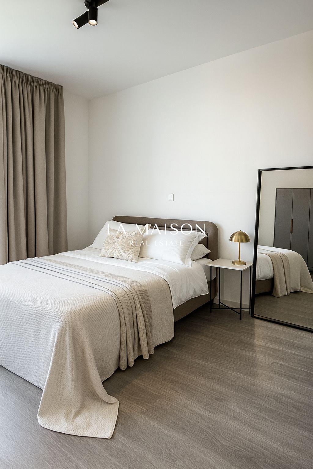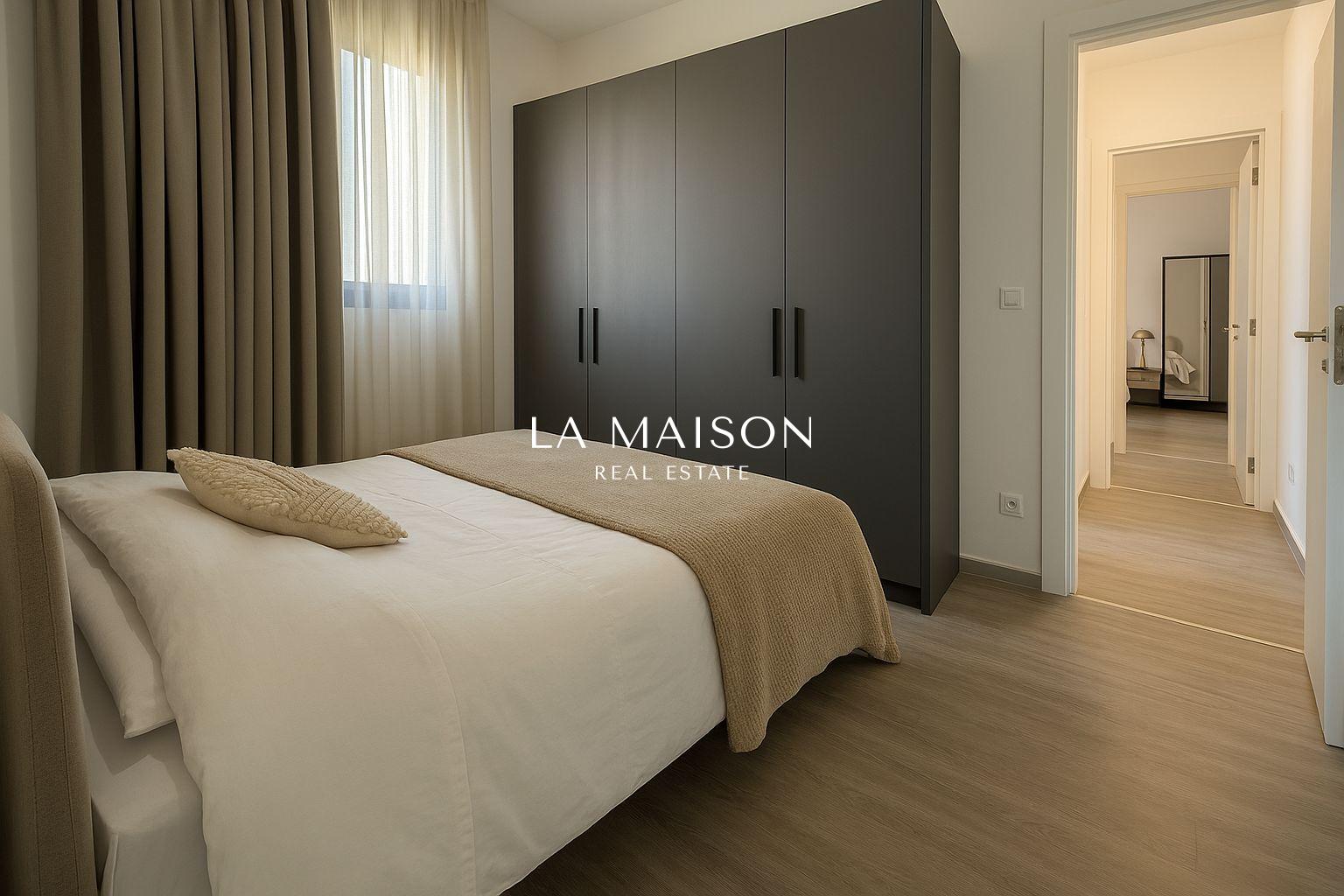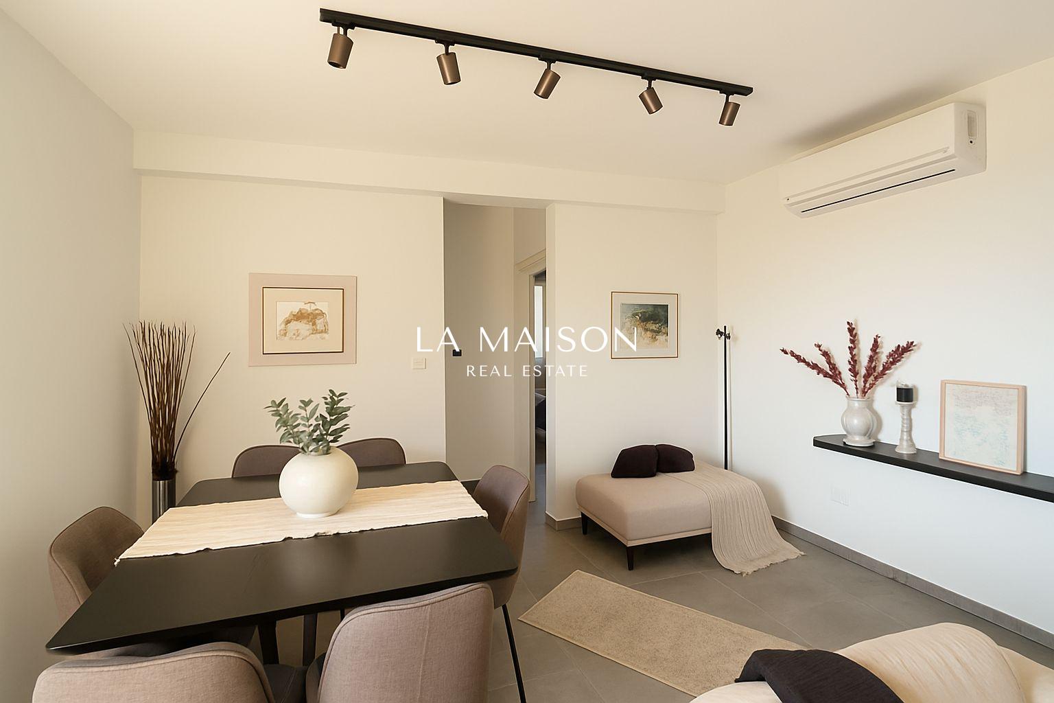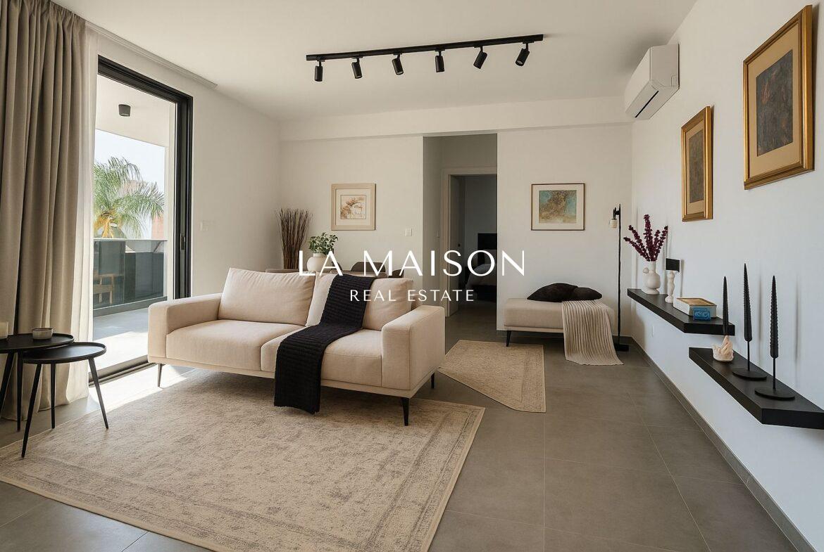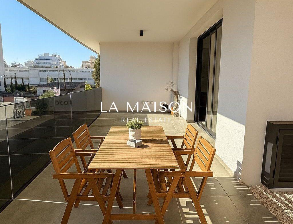 Introducing a stunning and stylish contemporary two-bedroom apartment that redefines modern living. This brand-new residence, available for rent for the very first time, spans 90 sqm of internal space plus a generous 30 sqm balcony, offering an exceptional blend of comfort and elegance. Designed with attention to detail, it features high-quality finishes and exquisite furniture throughout, creating a warm yet sophisticated atmosphere. The apartment comes fully furnished and equipped with all modern electrical appliances, including a dishwasher, washing machine with dryer, and all essential conveniences for a seamless lifestyle. Both bedrooms are spacious, with the master bedroom benefiting from an en-suite bathroom, ensuring privacy and comfort. Situated on the second floor of an impressive contemporary building, the property also offers a large storage room, dedicated parking space, underfloor heating, and full air conditioning for year-round comfort. Ideally located close to multiple schools, private and local gyms, bakeries, and a wide range of amenities, this exceptional apartment is the perfect choice for those seeking luxury, convenience, and style in one of the most desirable areas.