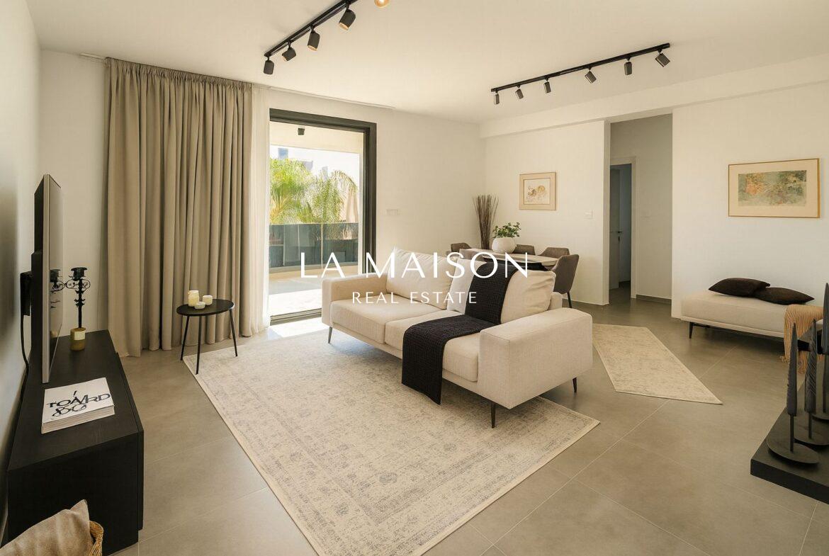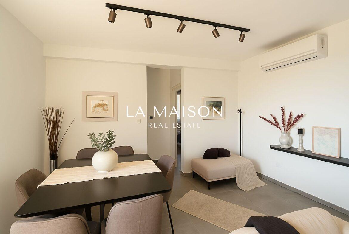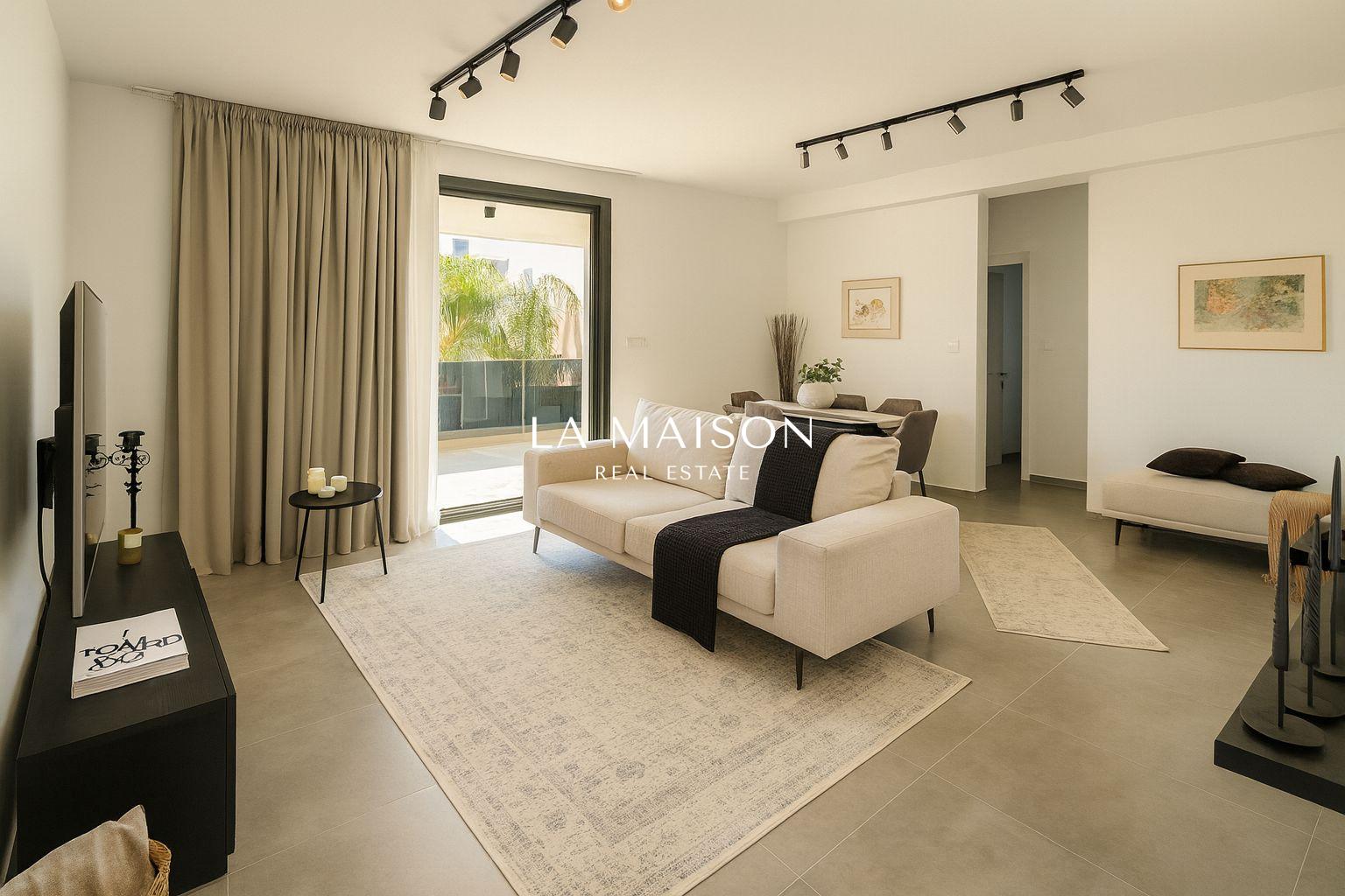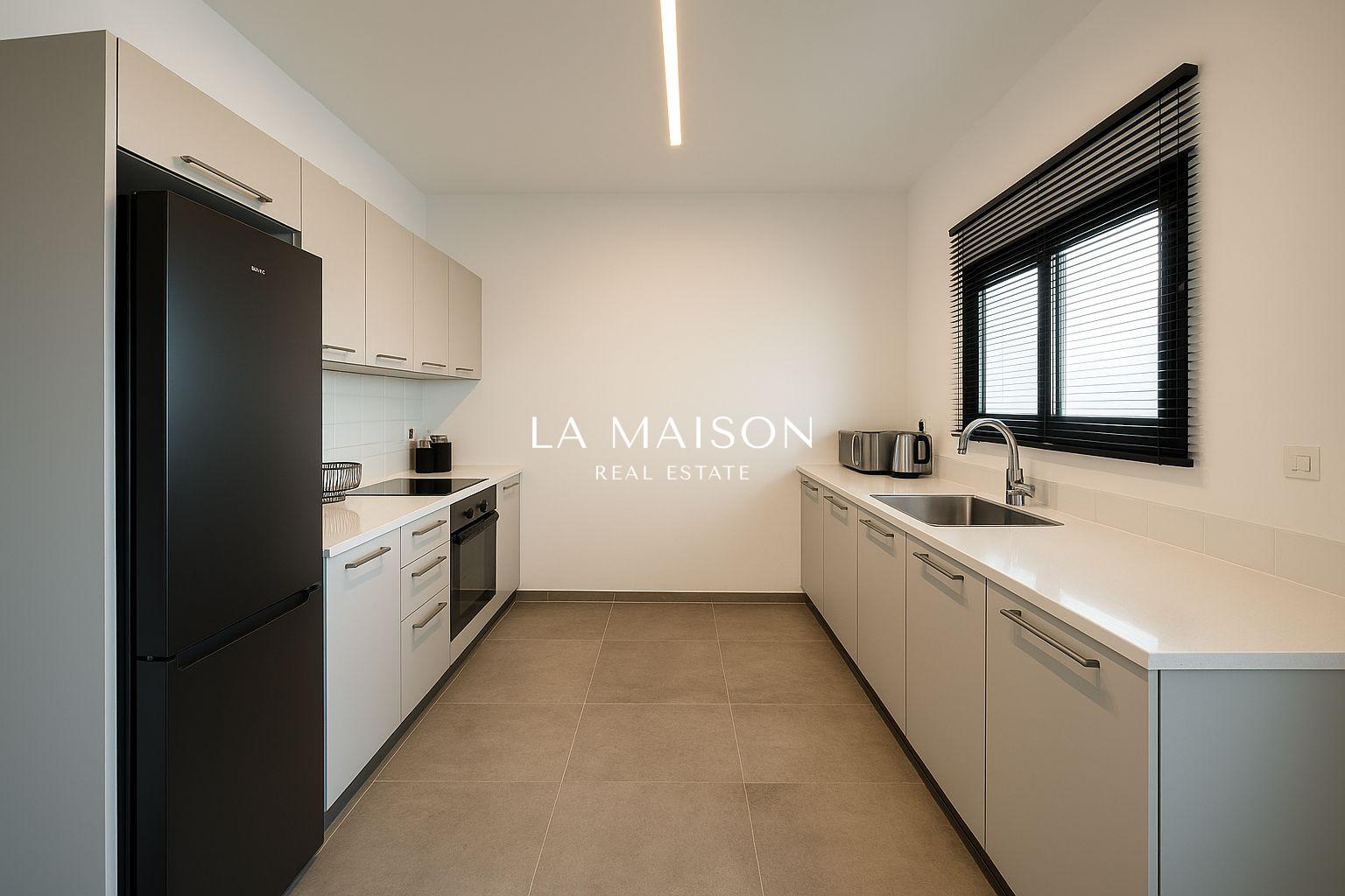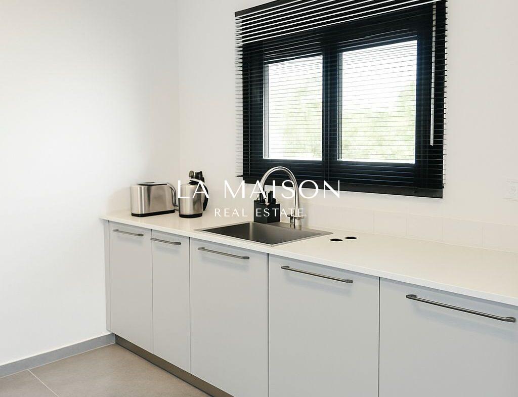 Introducing a stunning and stylish contemporary two-bedroom apartment that redefines modern living. This brand-new residence, available for rent for the very first time, spans 90 sqm of internal space plus a generous 30 sqm balcony, offering an exceptional blend of comfort and elegance. Designed with attention to detail, it features high-quality finishes and exquisite furniture throughout, creating a warm yet sophisticated atmosphere. The apartment comes fully furnished and equipped with all modern electrical appliances, including a dishwasher, washing machine with dryer, and all essential conveniences for a seamless lifestyle. Both bedrooms are spacious, with the master bedroom benefiting from an en-suite bathroom, ensuring privacy and comfort. Situated on the second floor of an impressive contemporary building, the property also offers a large storage room, dedicated parking space, underfloor heating, and full air conditioning for year-round comfort. Ideally located close to multiple schools, private and local gyms, bakeries, and a wide range of amenities, this exceptional apartment is the perfect choice for those seeking luxury, convenience, and style in one of the most desirable areas.