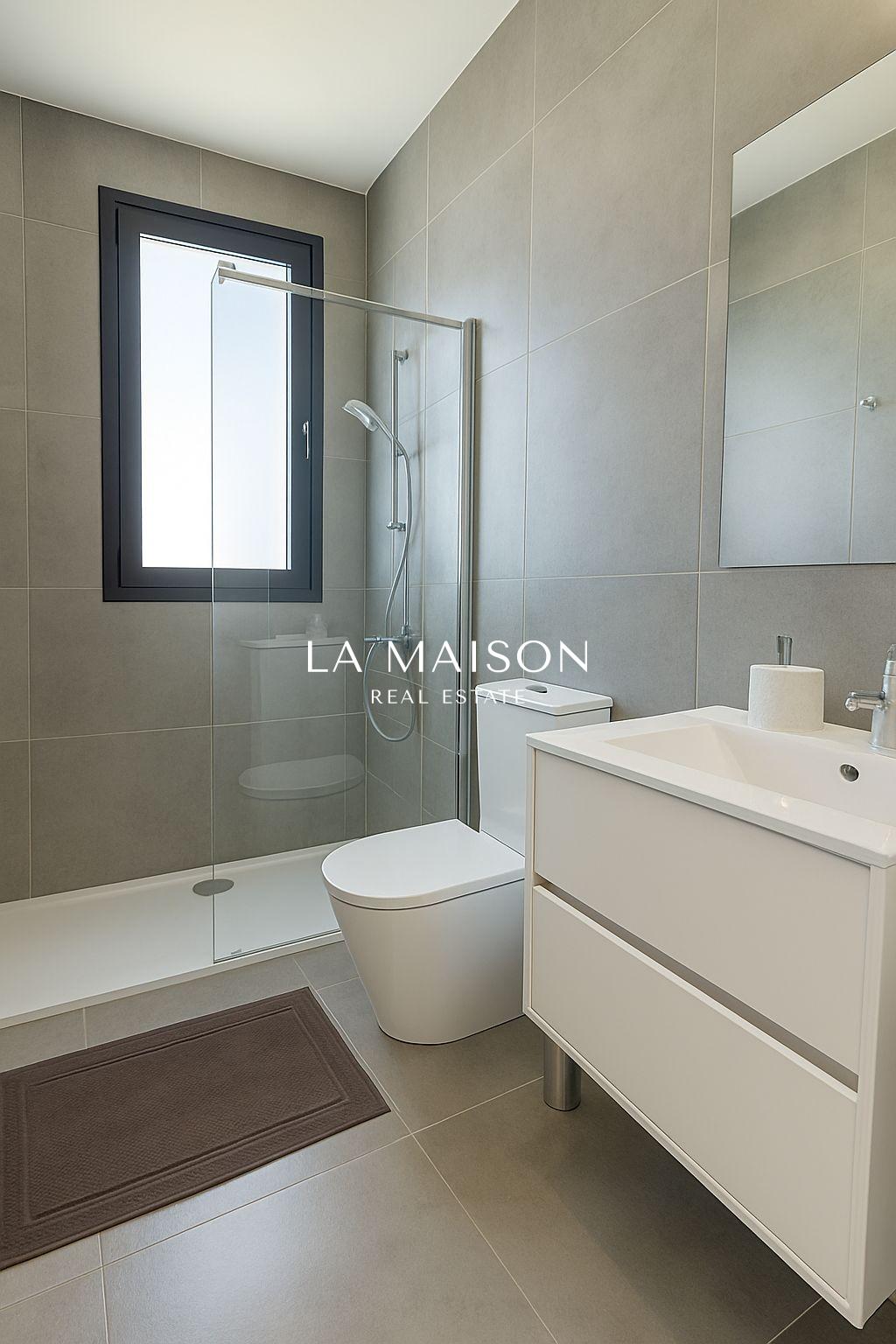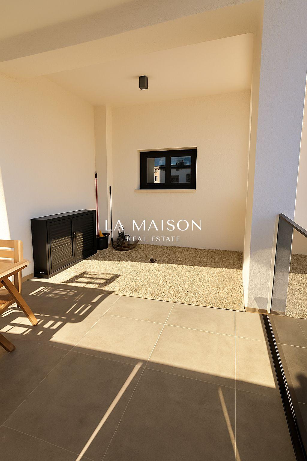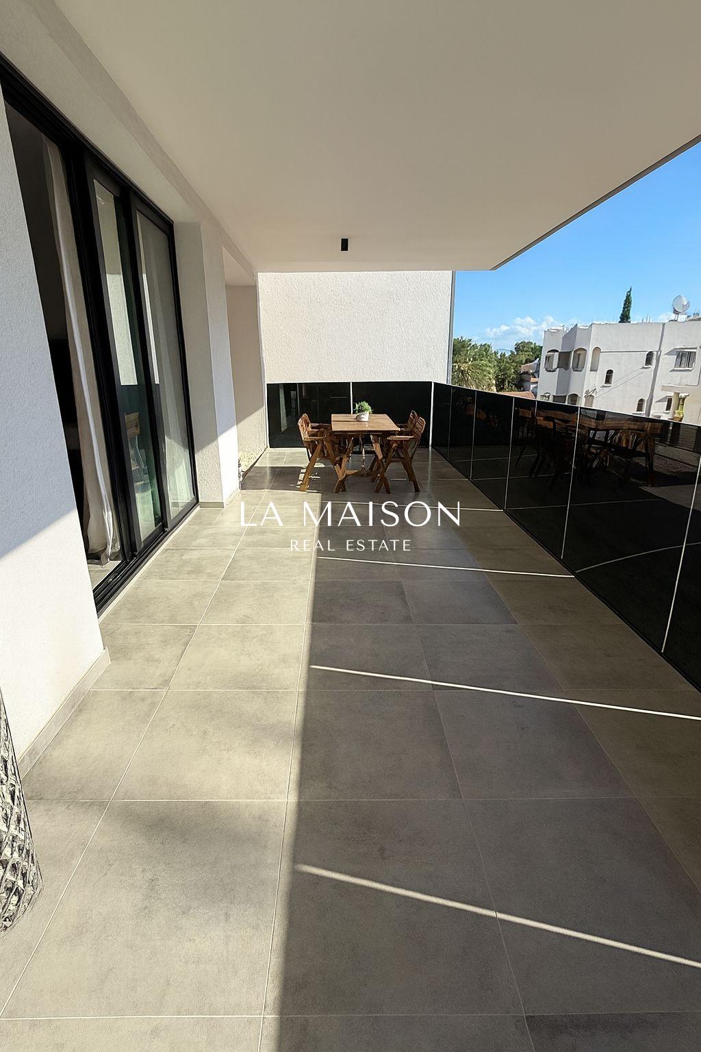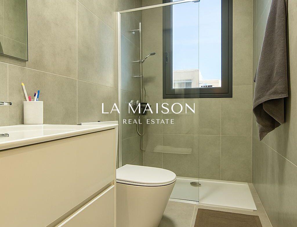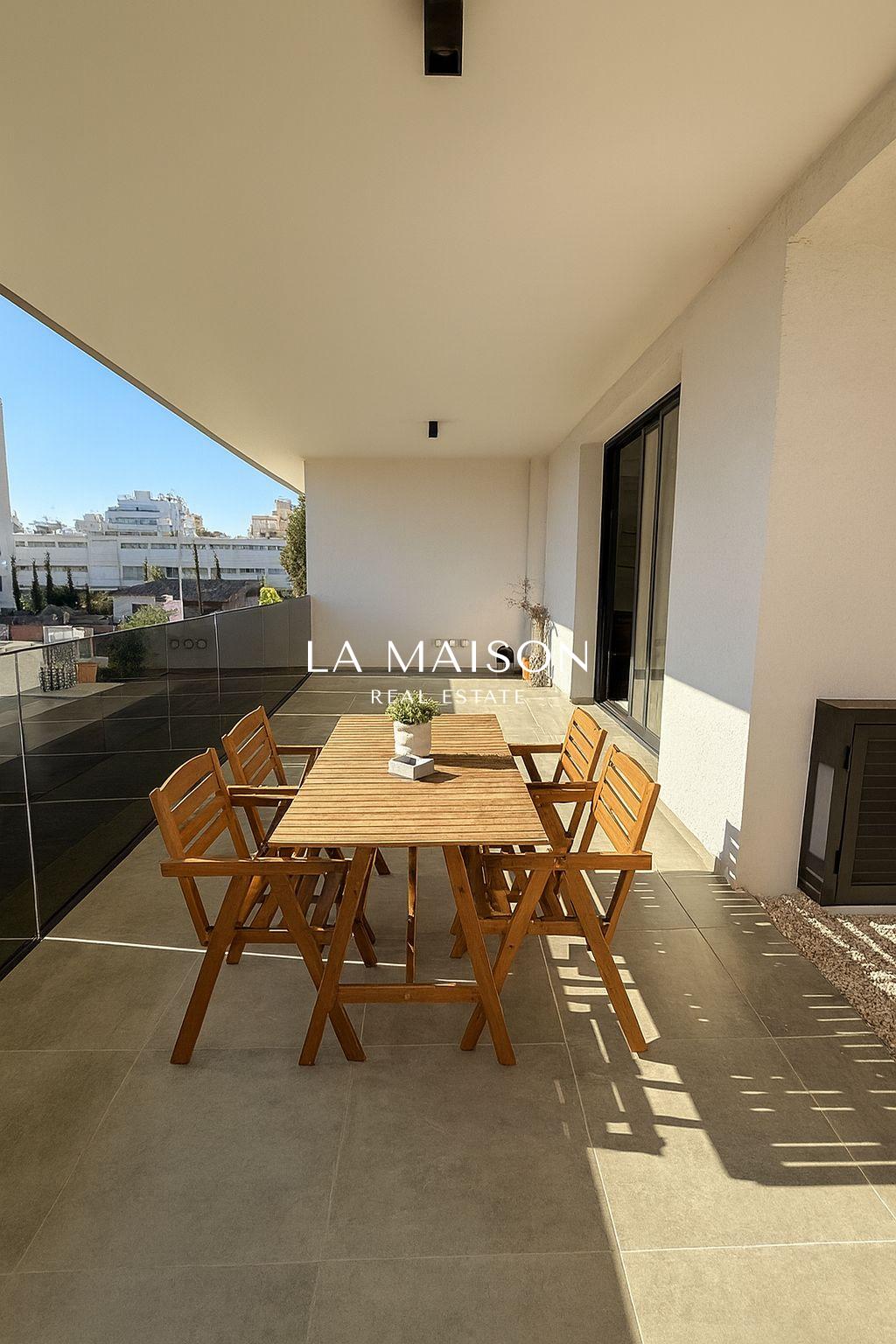 Introducing a stunning and stylish contemporary two-bedroom apartment that redefines modern living. This brand-new residence, available for rent for the very first time, spans 90 sqm of internal space plus a generous 30 sqm balcony, offering an exceptional blend of comfort and elegance. Designed with attention to detail, it features high-quality finishes and exquisite furniture throughout, creating a warm yet sophisticated atmosphere. The apartment comes fully furnished and equipped with all modern electrical appliances, including a dishwasher, washing machine with dryer, and all essential conveniences for a seamless lifestyle. Both bedrooms are spacious, with the master bedroom benefiting from an en-suite bathroom, ensuring privacy and comfort. Situated on the second floor of an impressive contemporary building, the property also offers a large storage room, dedicated parking space, underfloor heating, and full air conditioning for year-round comfort. Ideally located close to multiple schools, private and local gyms, bakeries, and a wide range of amenities, this exceptional apartment is the perfect choice for those seeking luxury, convenience, and style in one of the most desirable areas.