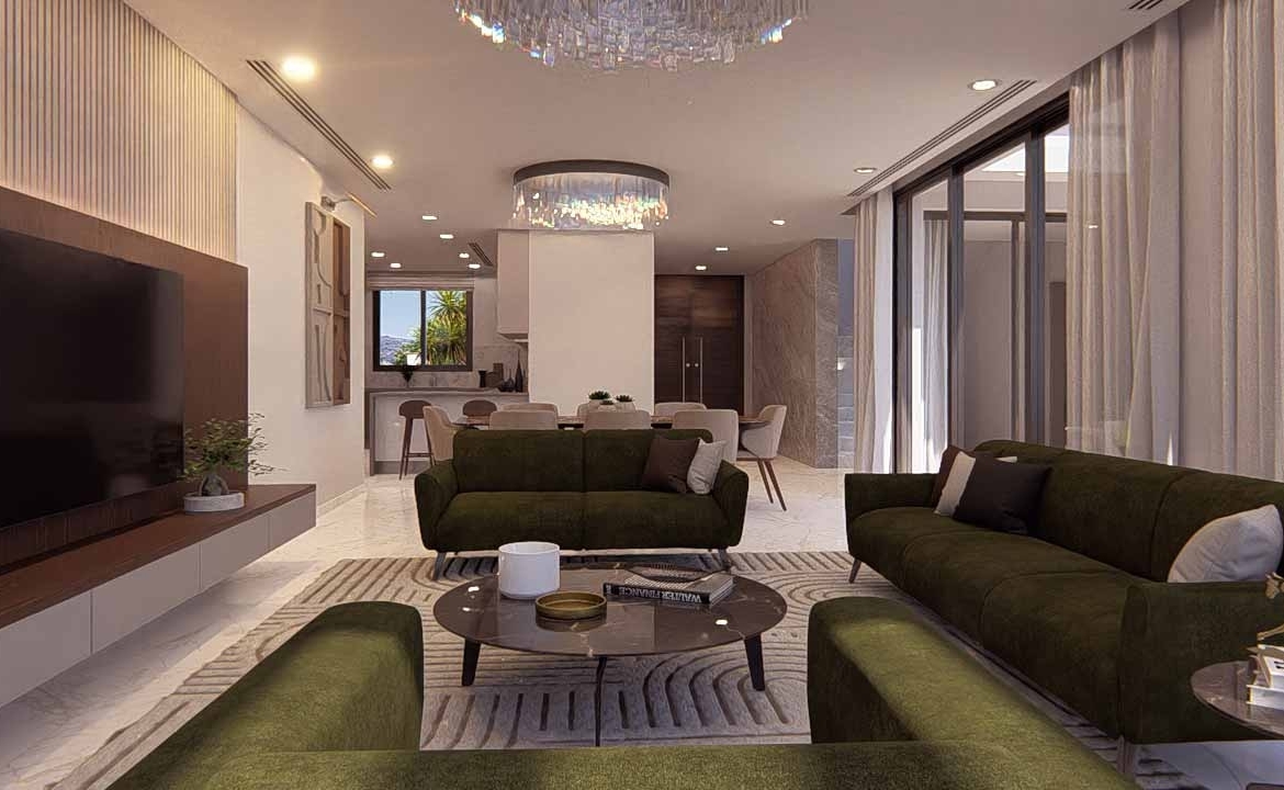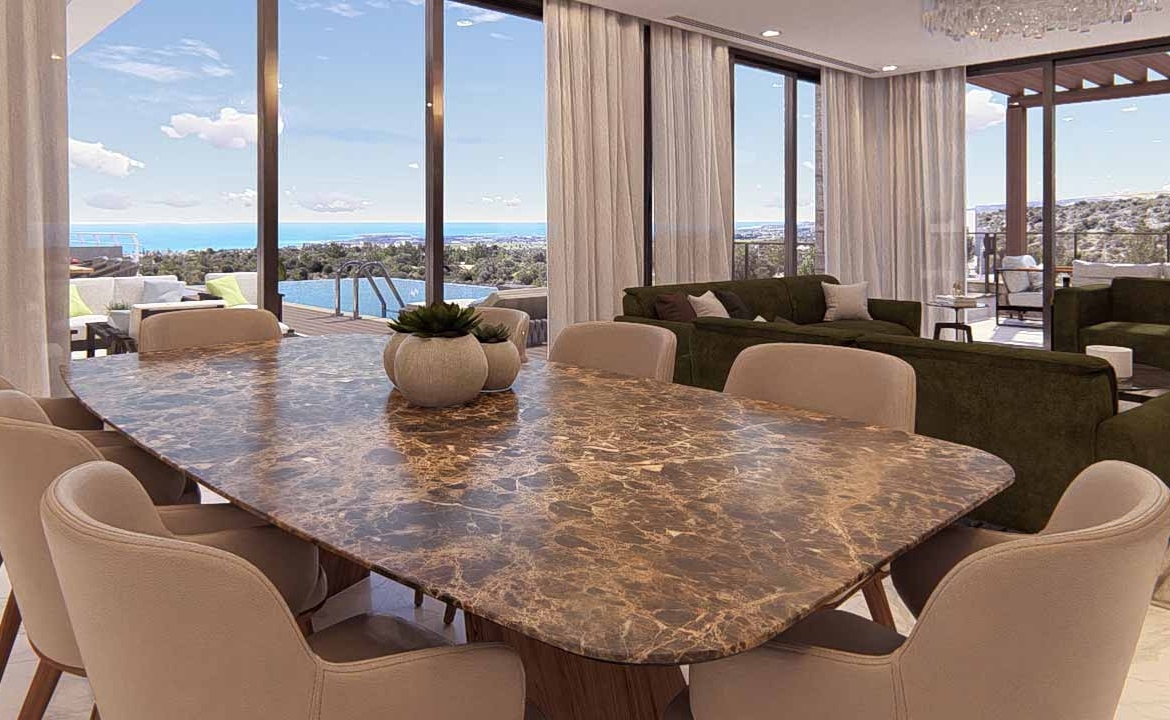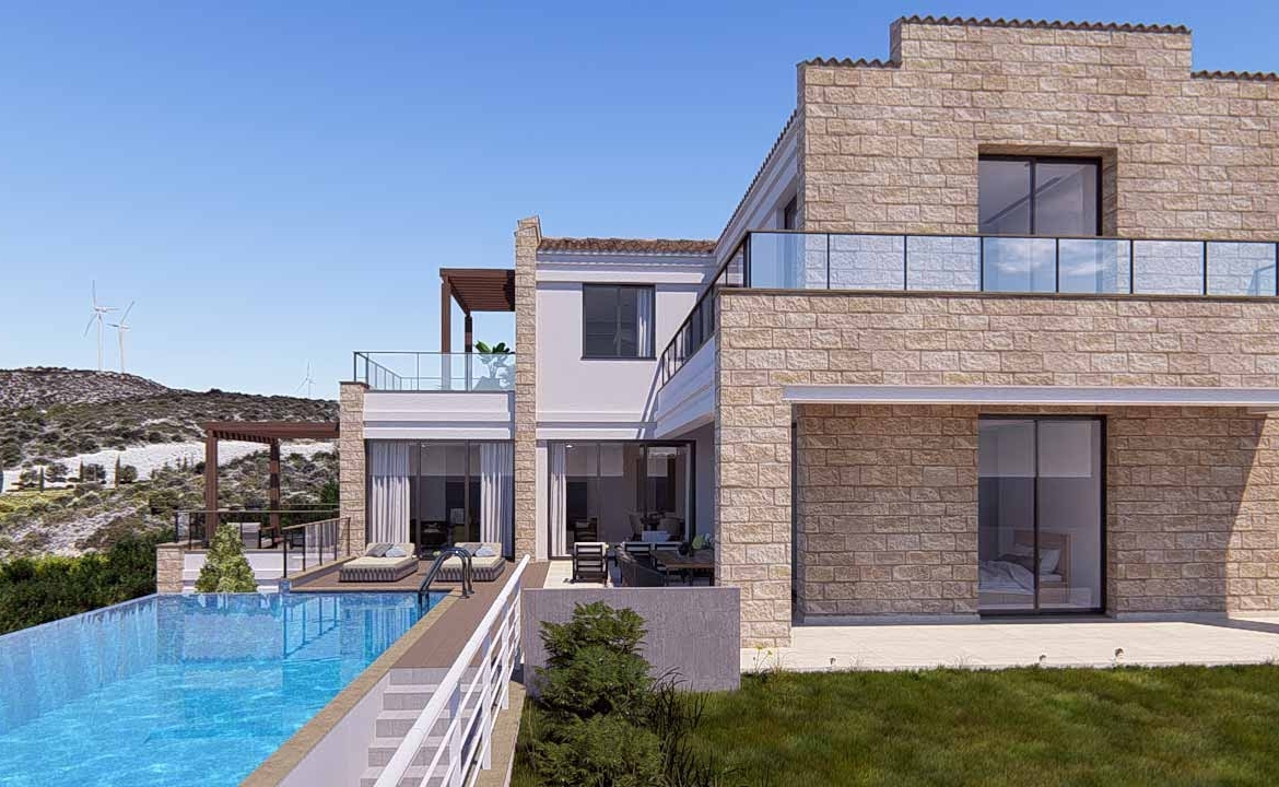 This stunning 5-bedroom villa offers a seamless blend of modern and Mediterranean architecture. Located on a large plot, it includes a private swimming pool, generous living spaces, and large terraces, all overlooking the picturesque Mediterranean sea.