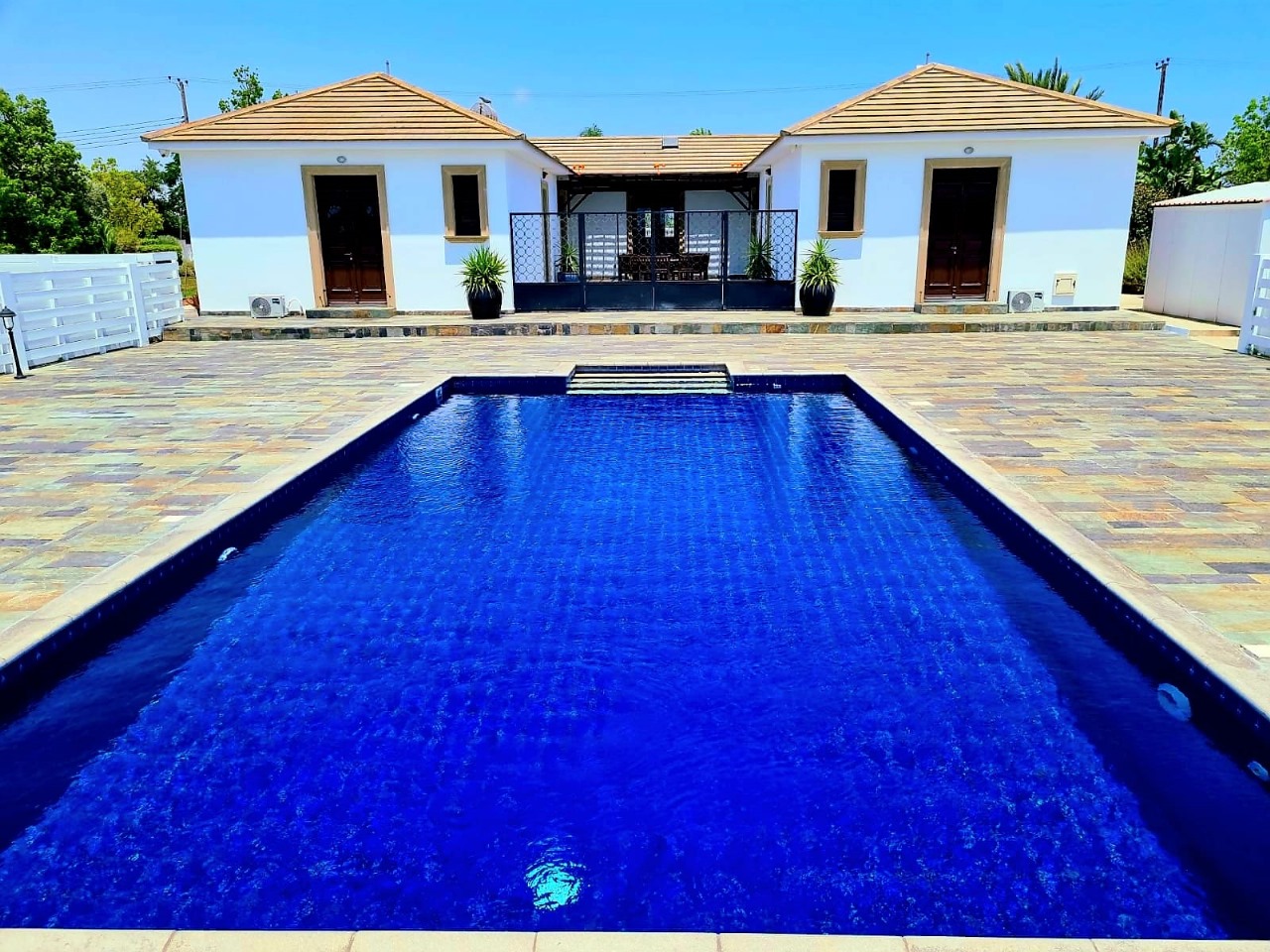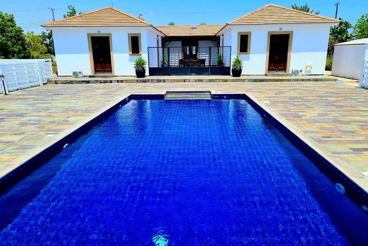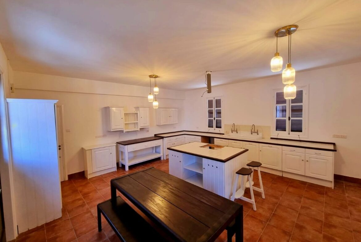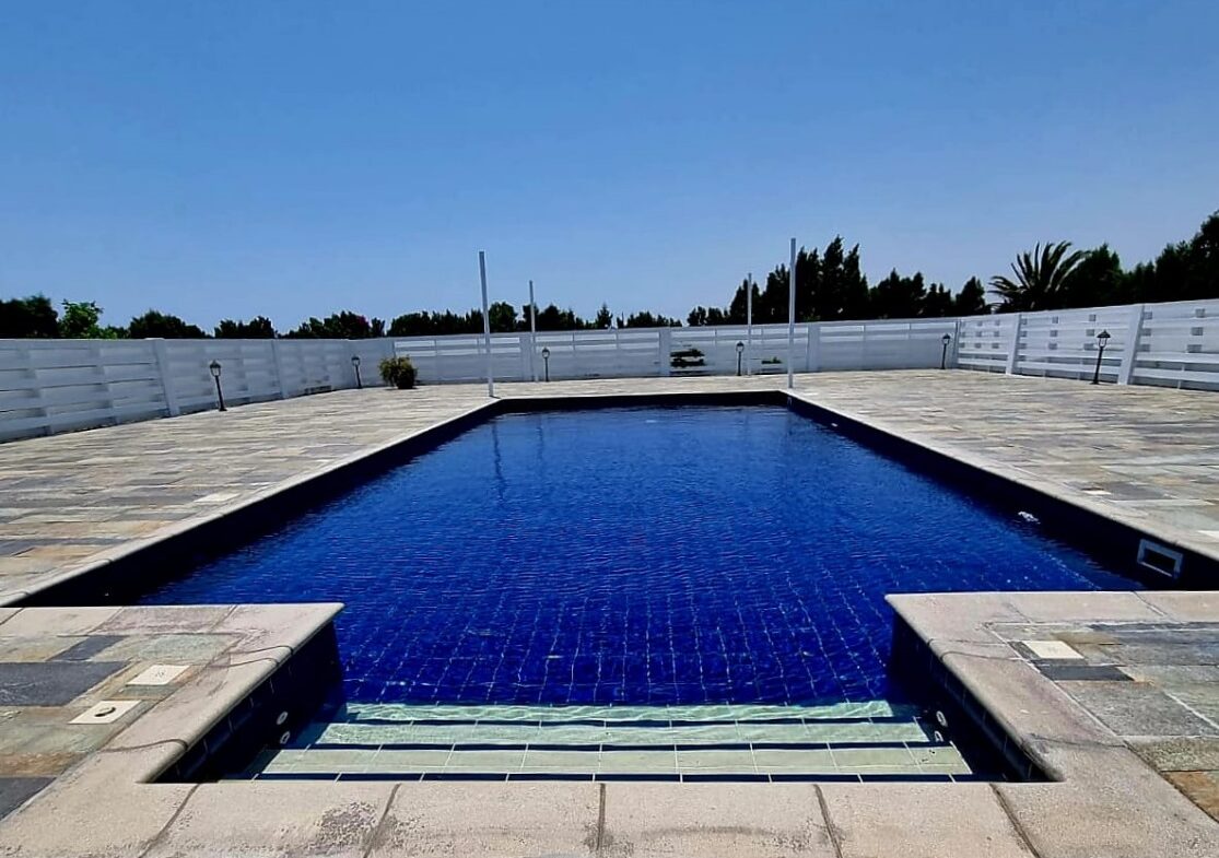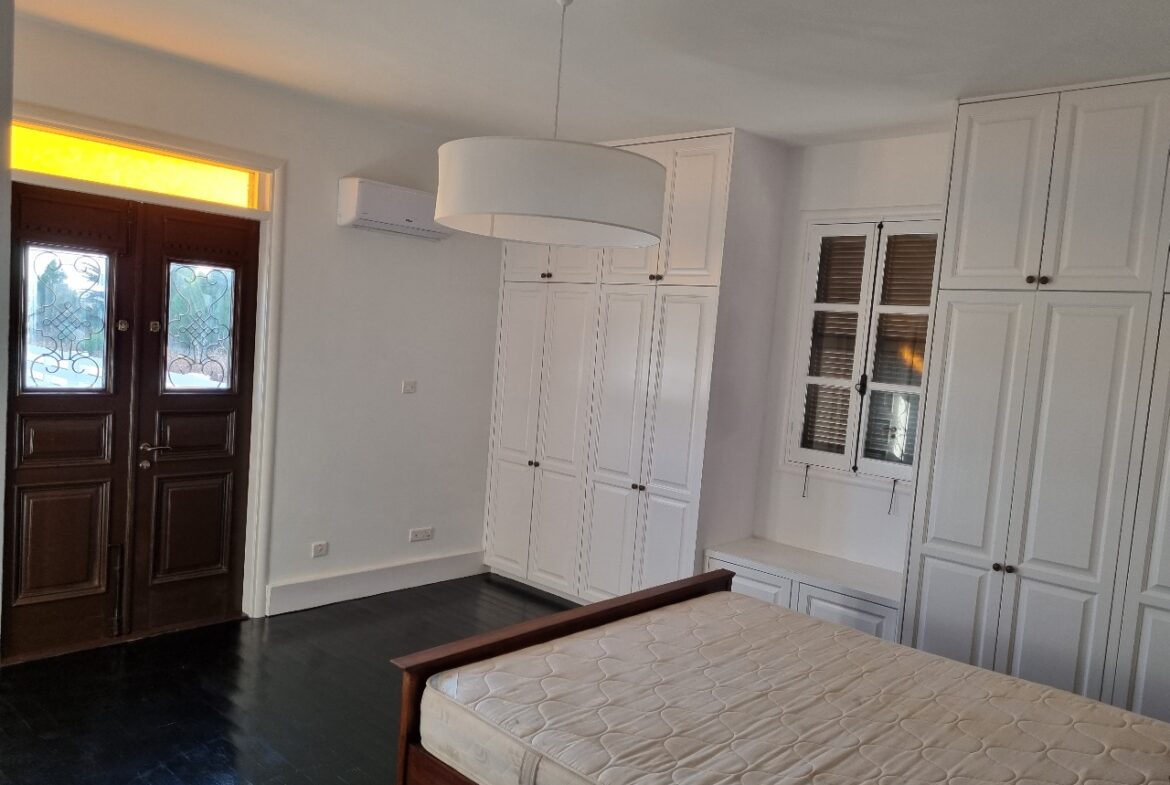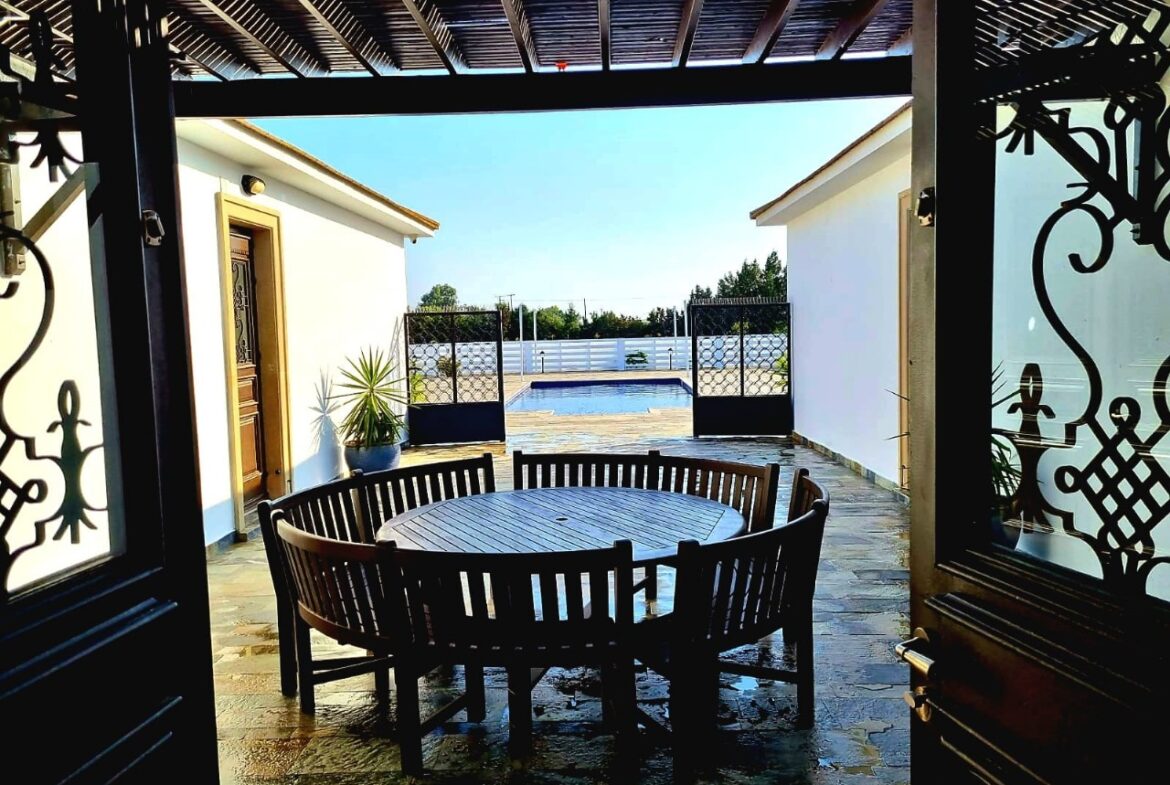 An extraordinary Villa in a lovely location in Pervolia area for rent! It’s located only 500 meters from the beach, in the middle of the green fields! The property consists 5 bedrooms, 4 bathrooms, a private pool, big yard in a 5000 Sq plot! Also has a playroom, storage, two fireplaces, alarm system, electrical gates and surveillance cameras! It’s partly renovated and had just been renovated!