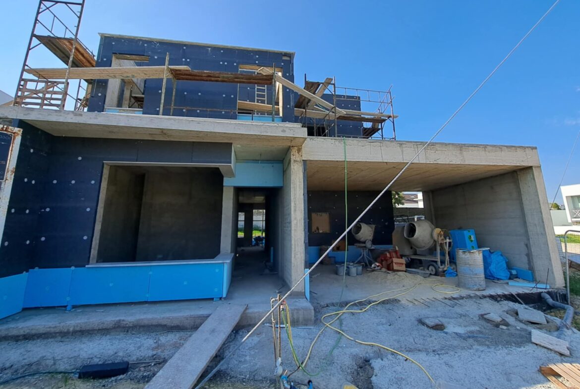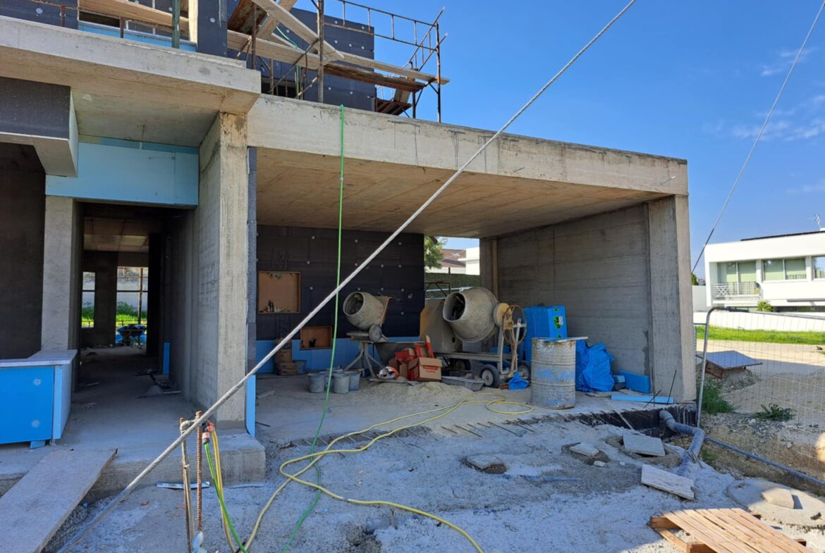 A modern design detached villa with big garden in Aradippou area for sale! The villa is located in a very nice and quiet area, near all amenities (supermarkets, schools, bakeries, pharmacies, banks, shops) and it has very easy access to the motorway! It consists a photovoltaic system, barbeque in the garden and three warehouses. The villa in under construction, it can be finish in 4 months!
