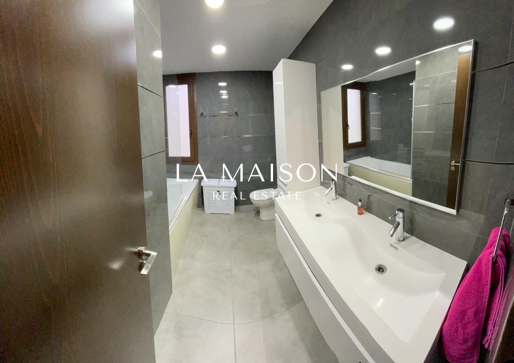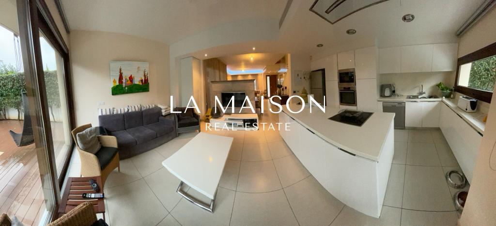 All four spacious bedrooms and two bathrooms are conveniently located on the ground floor, ensuring easy access and practical everyday living. The home is equipped with a central A/C system with heat pump, underfloor heating, and photovoltaic panels, delivering excellent energy efficiency and year-round comfort.