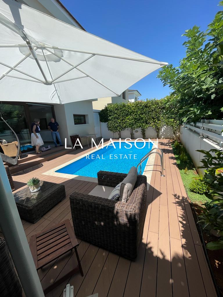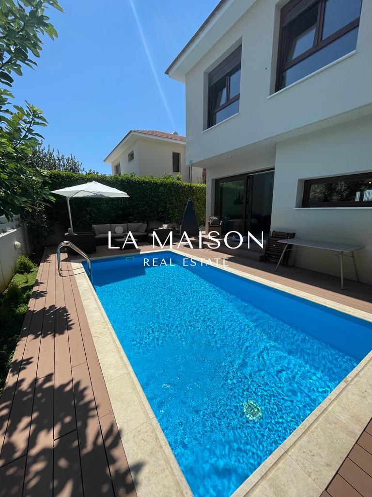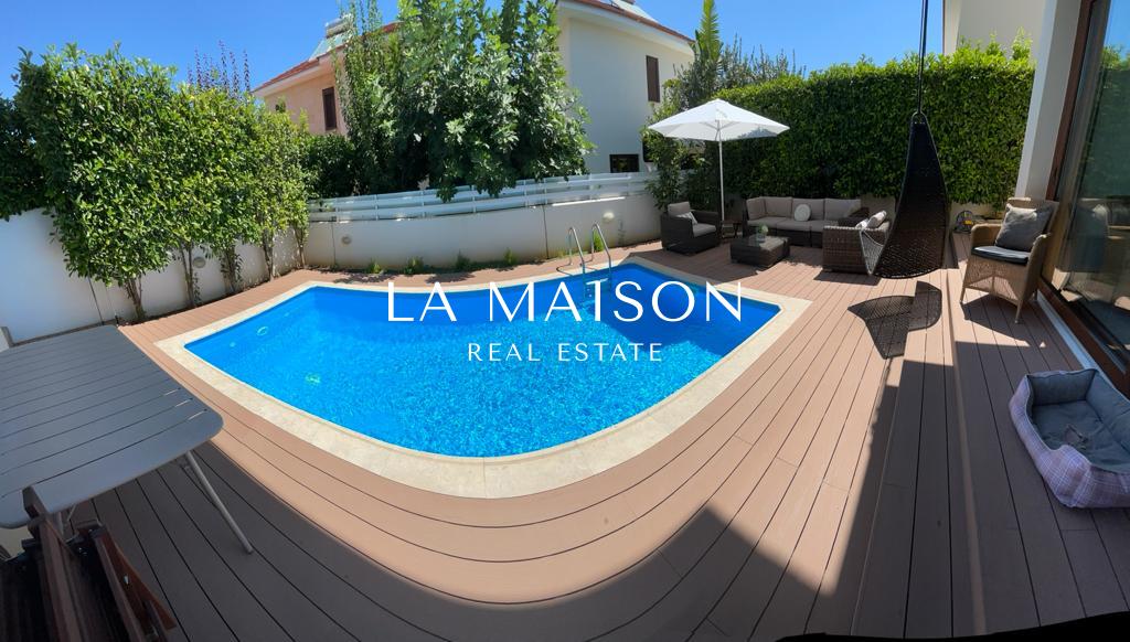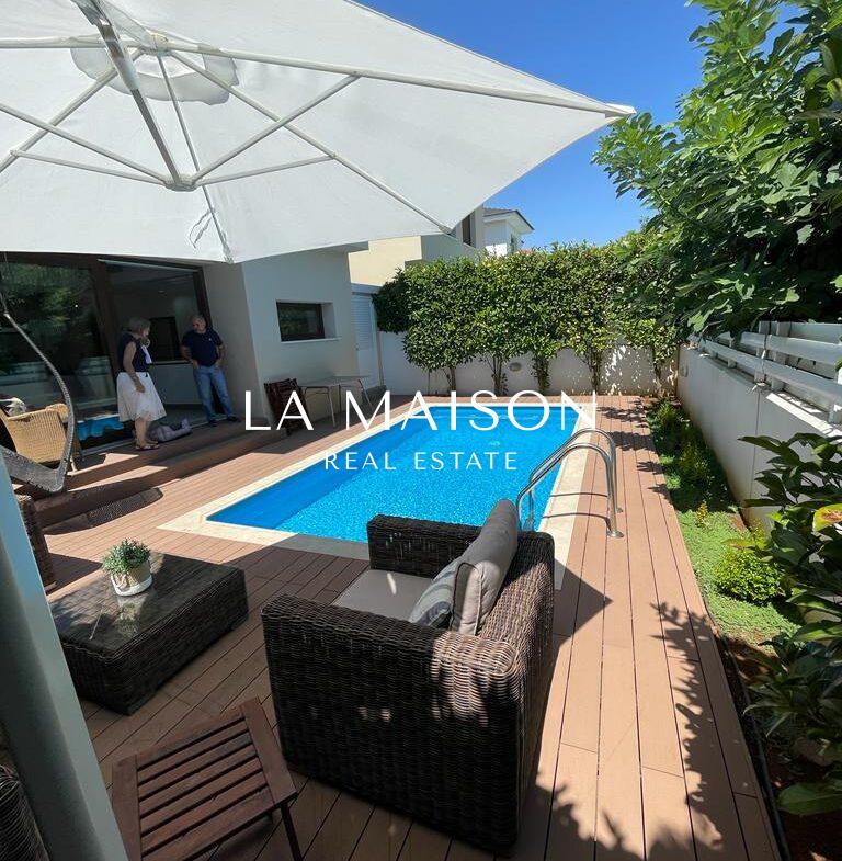 The outdoor areas are designed for relaxation and entertainment, featuring a private swimming pool ideal for family enjoyment or hosting guests.