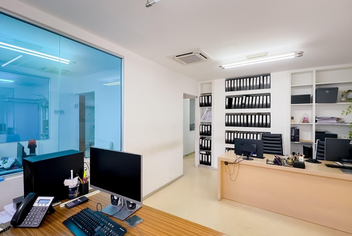 Welcome to this exceptional office space in the heart of Larnaca, Cyprus, perfect for businesses seeking an expansive and well-equipped workspace. This modern office spans two floors with a total covered area of 315 square meters. It features 13 individual offices, a well-appointed manager’s office, a spacious conference room, and a welcoming reception area. Additional amenities include a fully functional kitchen, two WCs, a dedicated server room for IT infrastructure, and five exclusive basement parking spaces. Ideal for startups or established corporations, this office provides a professional environment to elevate your business presence.