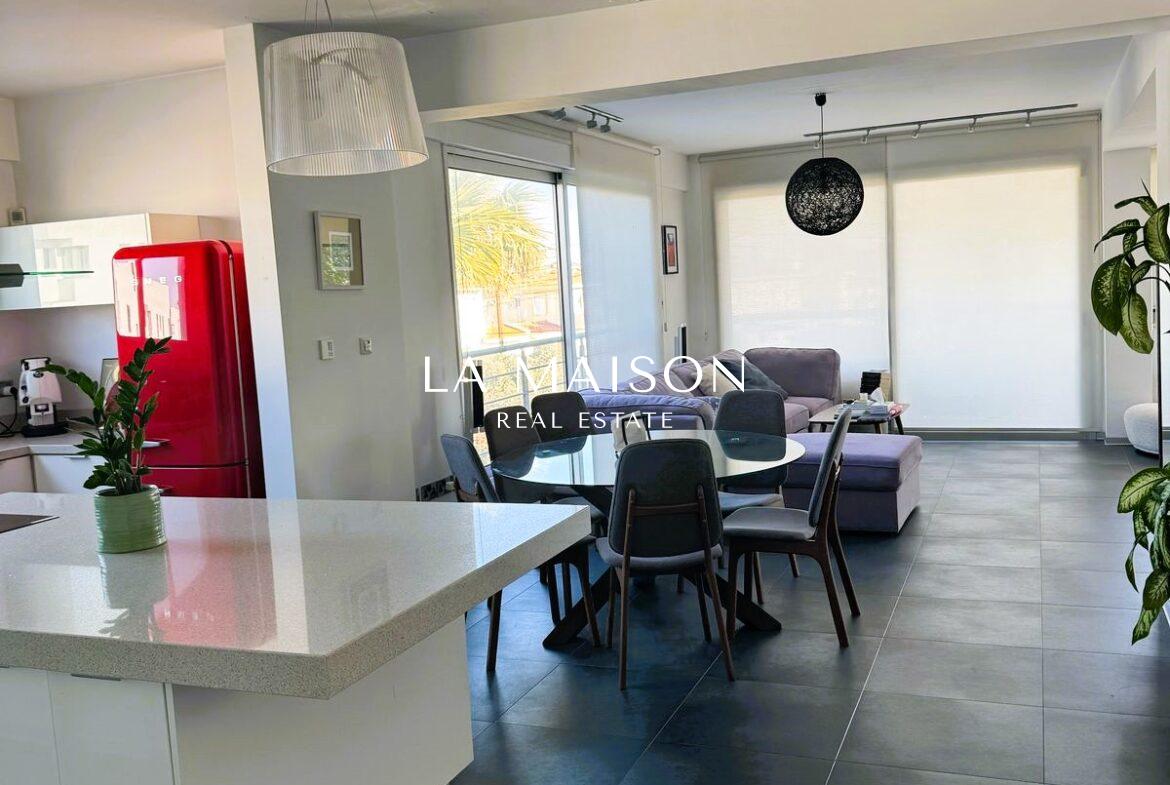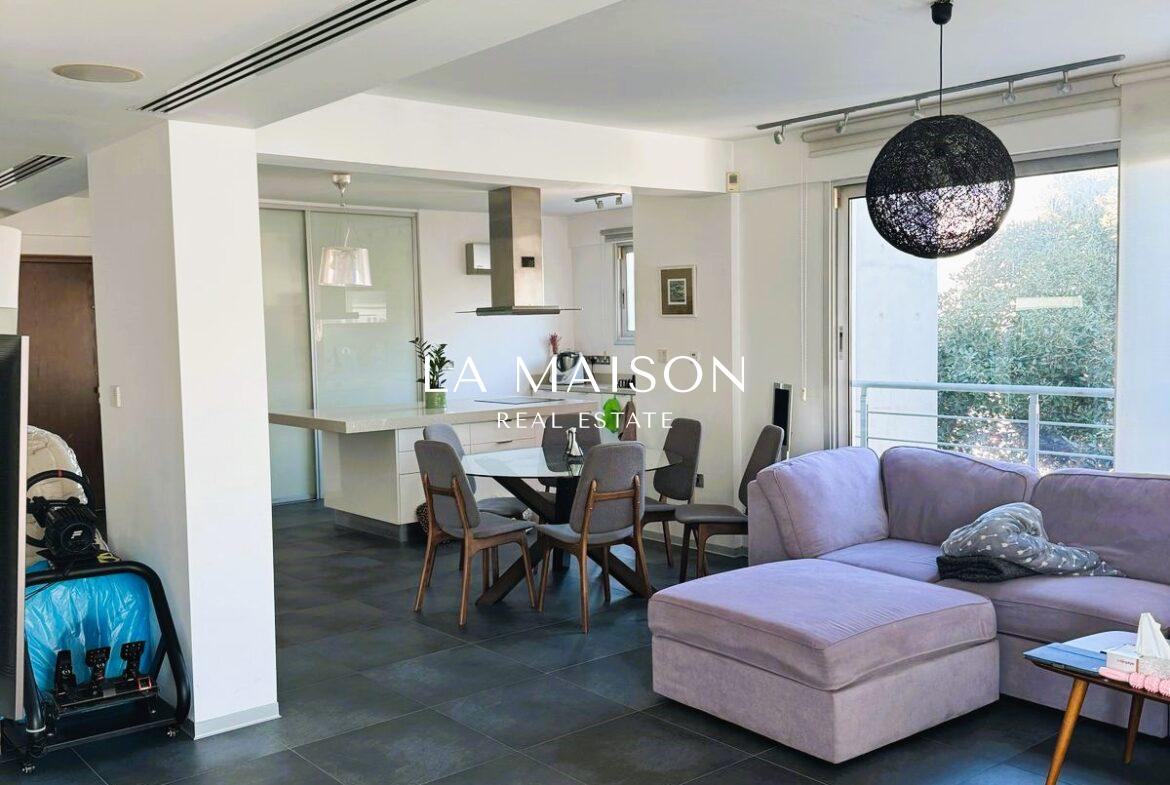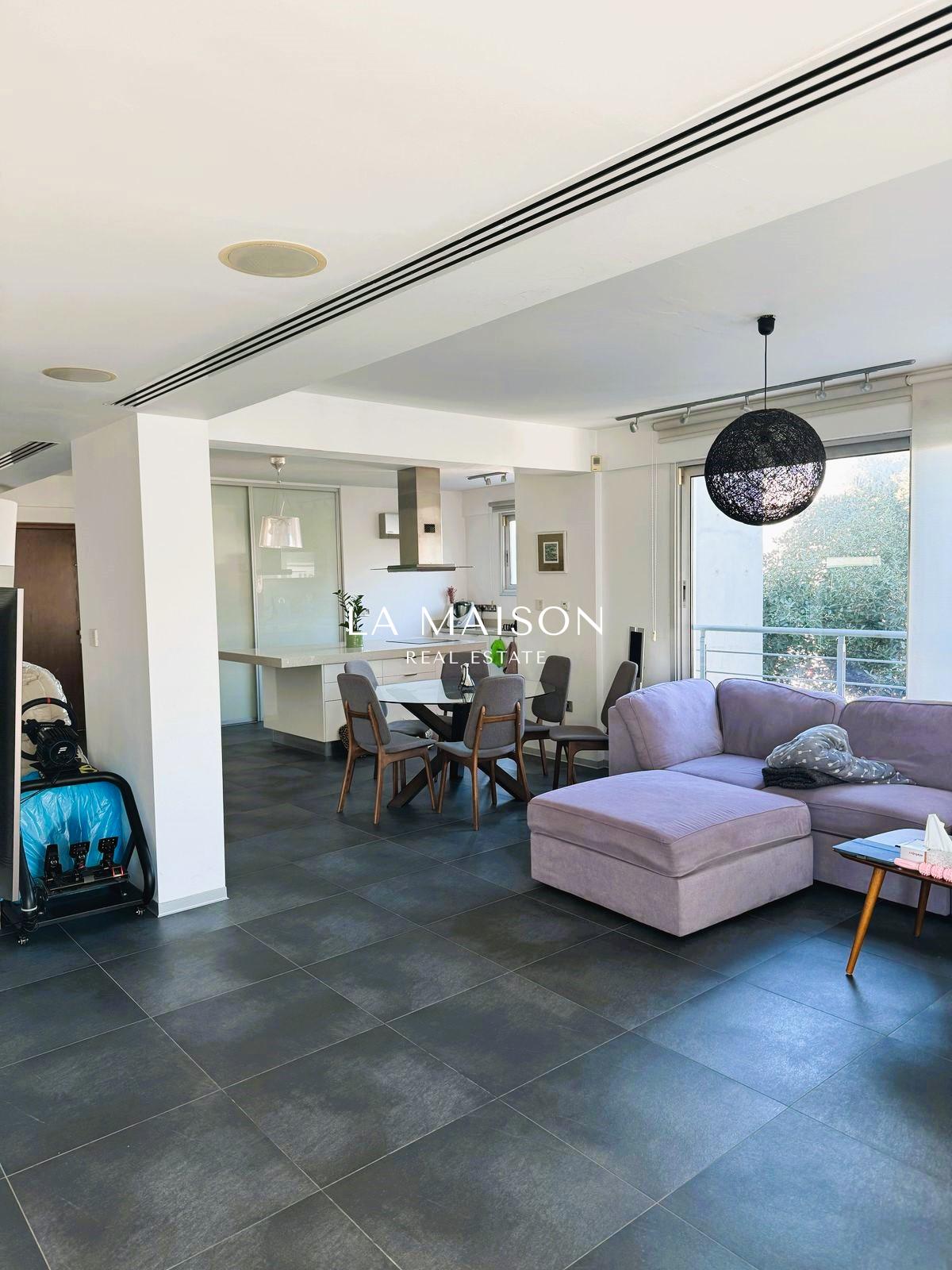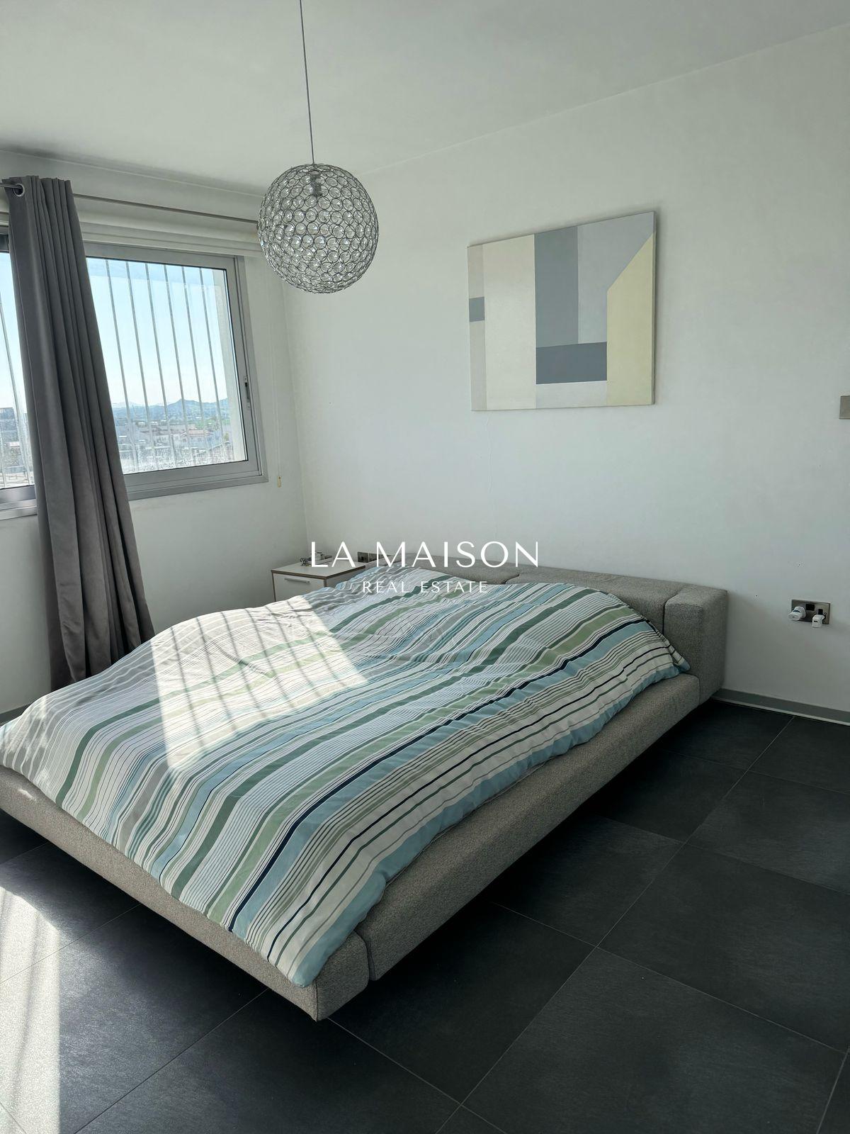 Located between Stavrou and Athinon in Strovolos, this fully furnished penthouse offers a unique blend of luxury and comfort. Originally a three-bedroom unit, it has been elegantly converted into a spacious two-bedroom residence with high-end finishes and modern design.