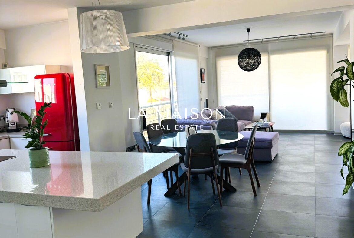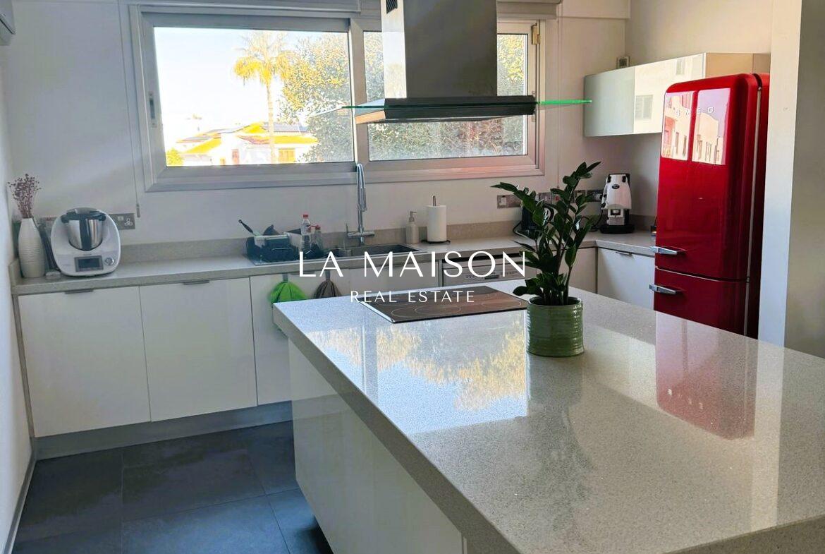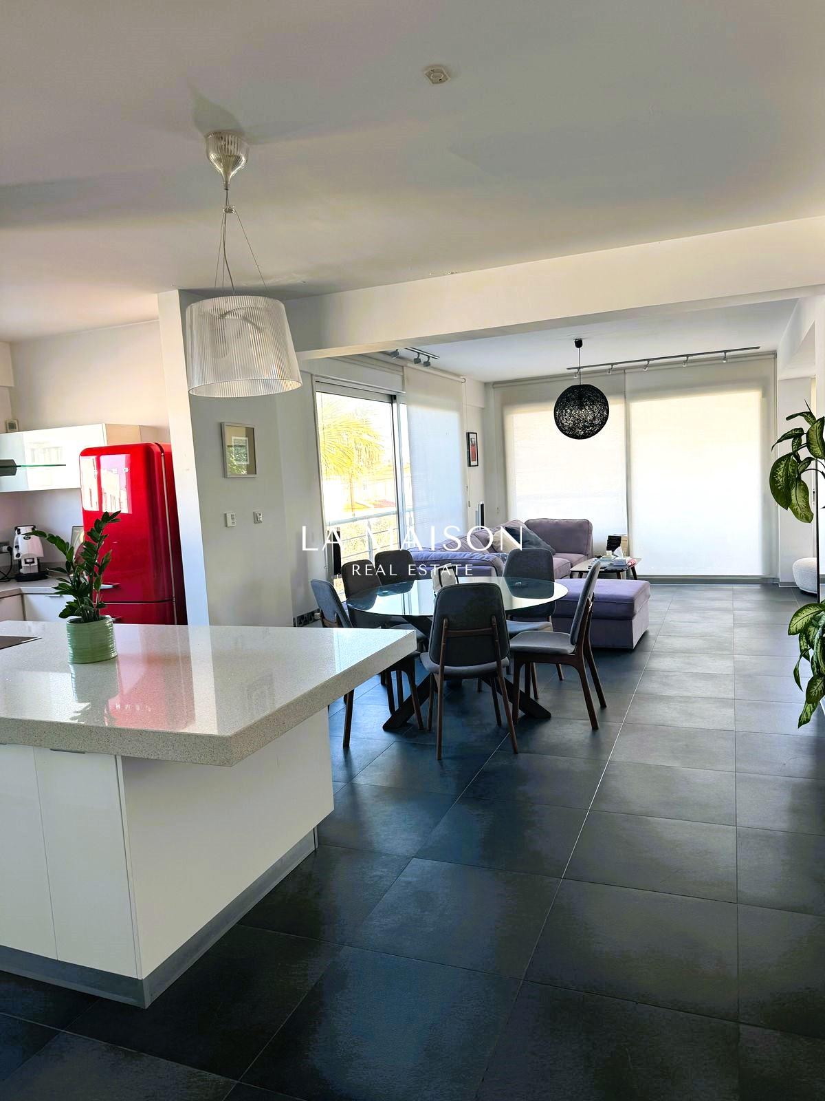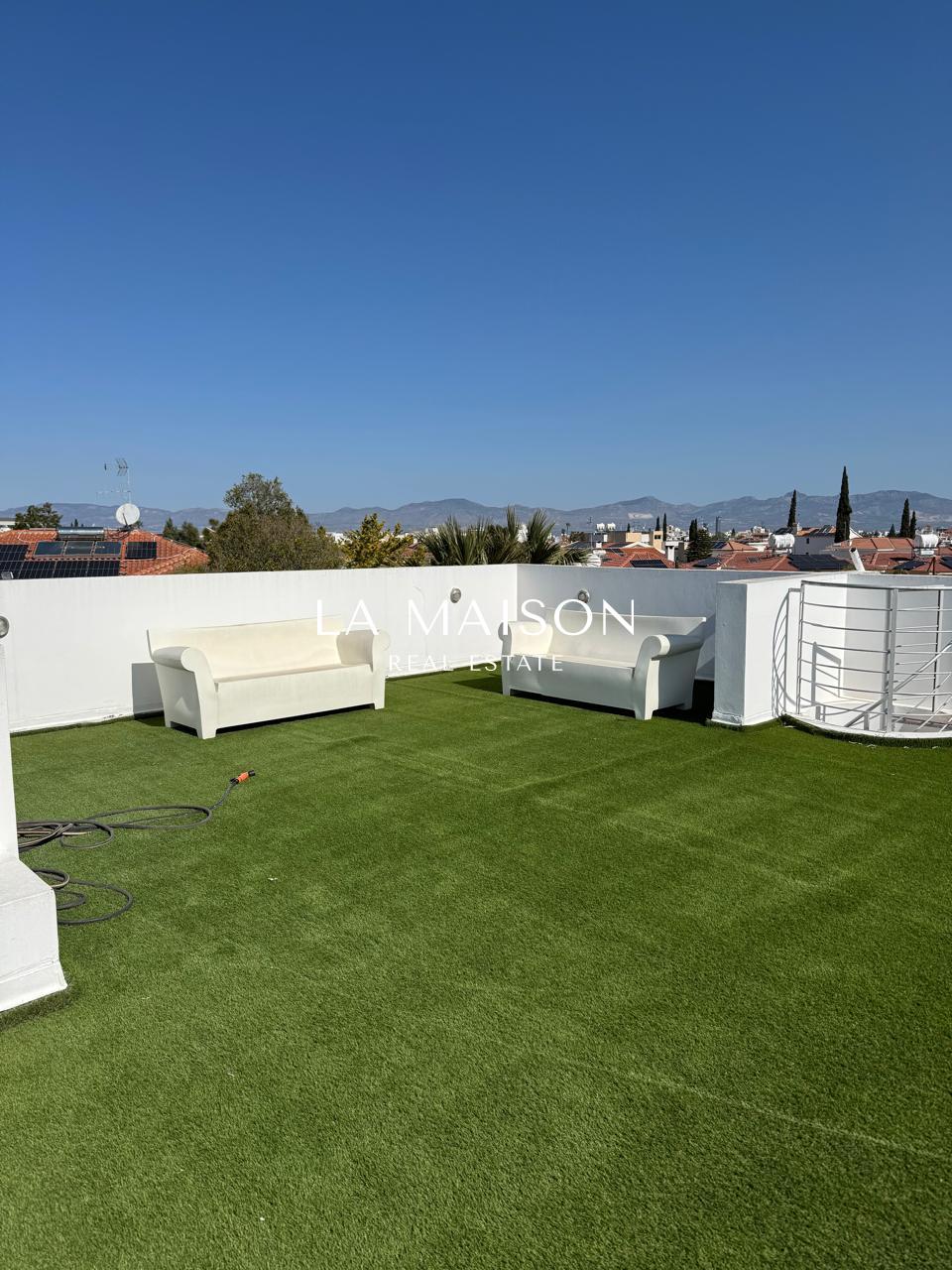 Located between Stavrou and Athinon in Strovolos, this fully furnished penthouse offers a unique blend of luxury and comfort. Originally a three-bedroom unit, it has been elegantly converted into a spacious two-bedroom residence with high-end finishes and modern design.