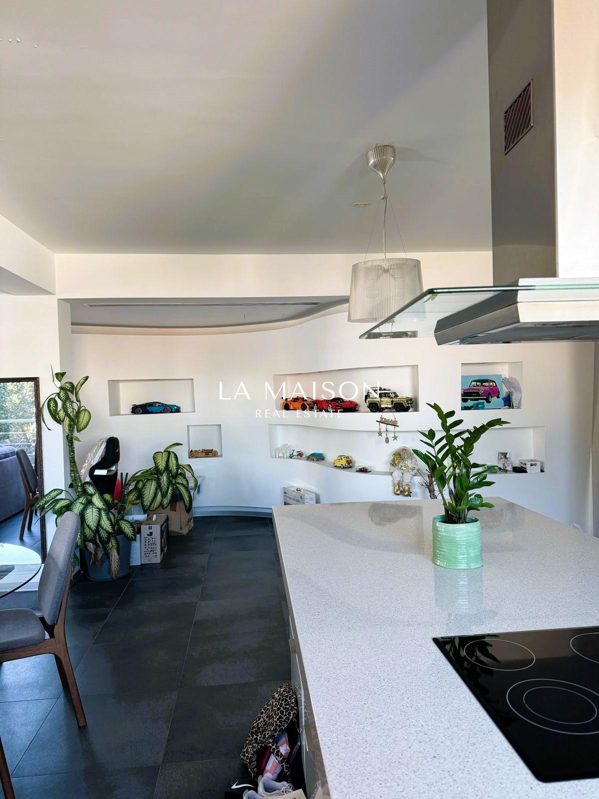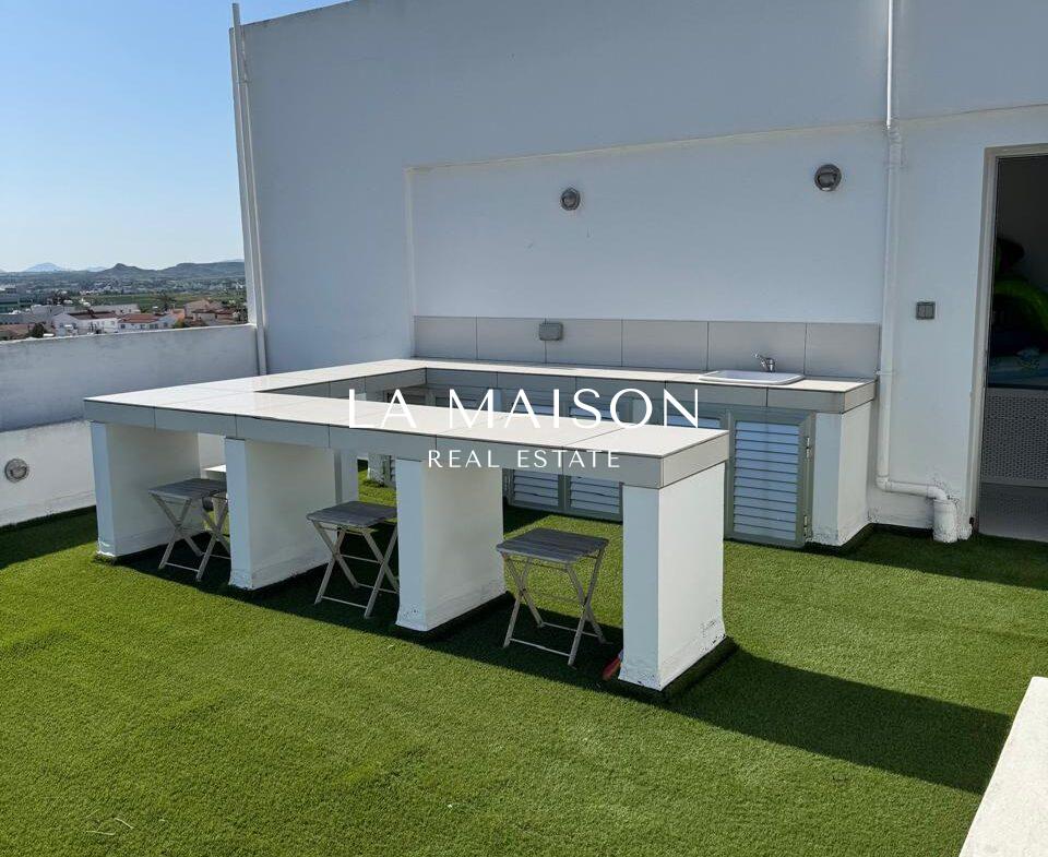 With an internal area of 120 sqm and 95 sqm of balconies, this penthouse provides ample space both indoors and outdoors. The highlight of the property is the private 80 sqm roof garden, featuring artificial grass and offering breathtaking city views perfect for relaxation and entertainment. The apartment includes two large bedrooms, two modern showers, and an Italian custom-made kitchen equipped with premium electrical appliances. It is fully air-conditioned and features underfloor electric heating for year-round comfort.