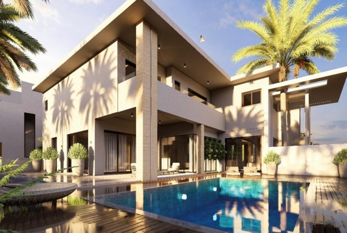 • A landscaped plot with a private overflow pool (11 × 5 m)