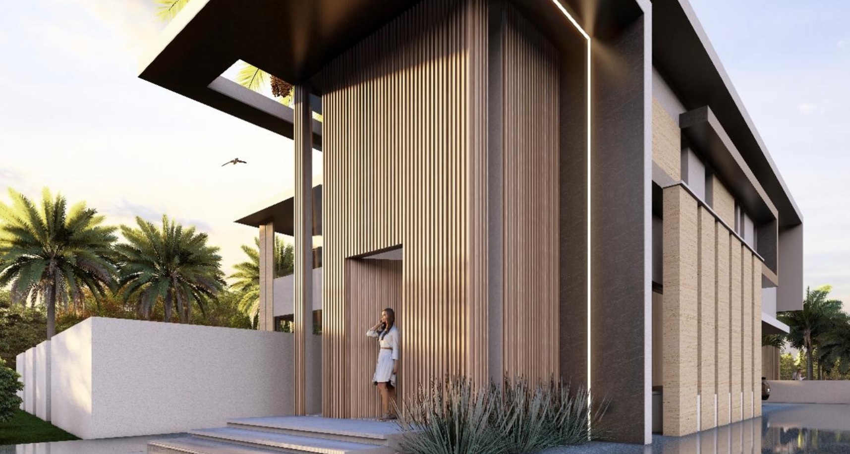 • Signature high‑spec architectural design with travertine/ceramic cladding & aluminium façades