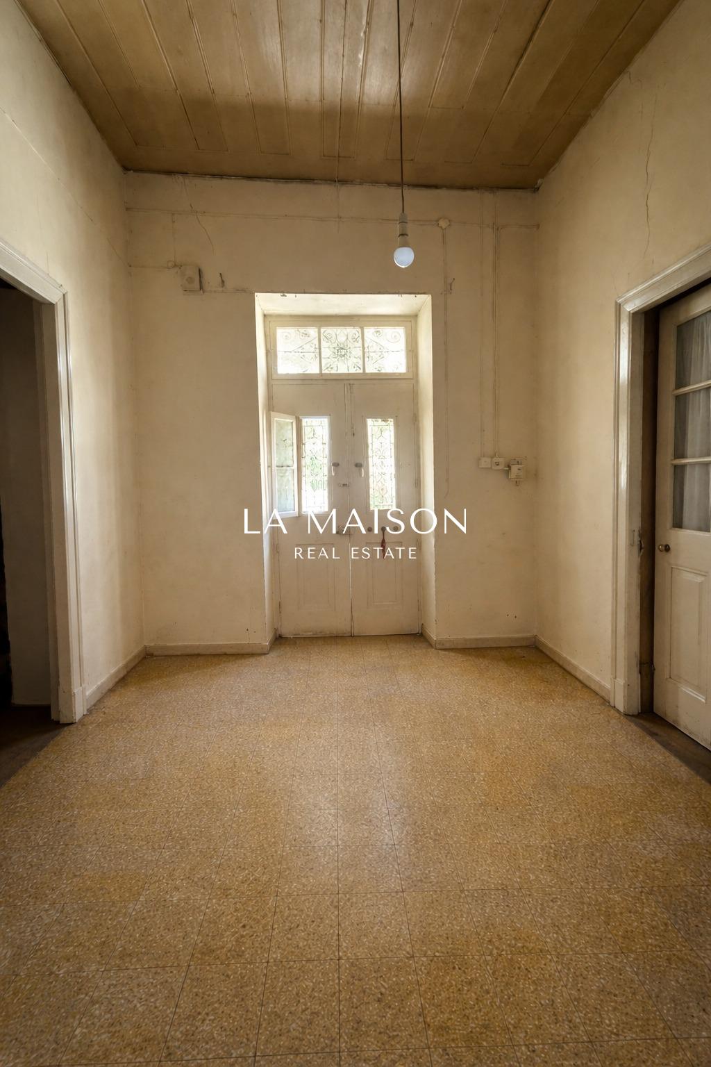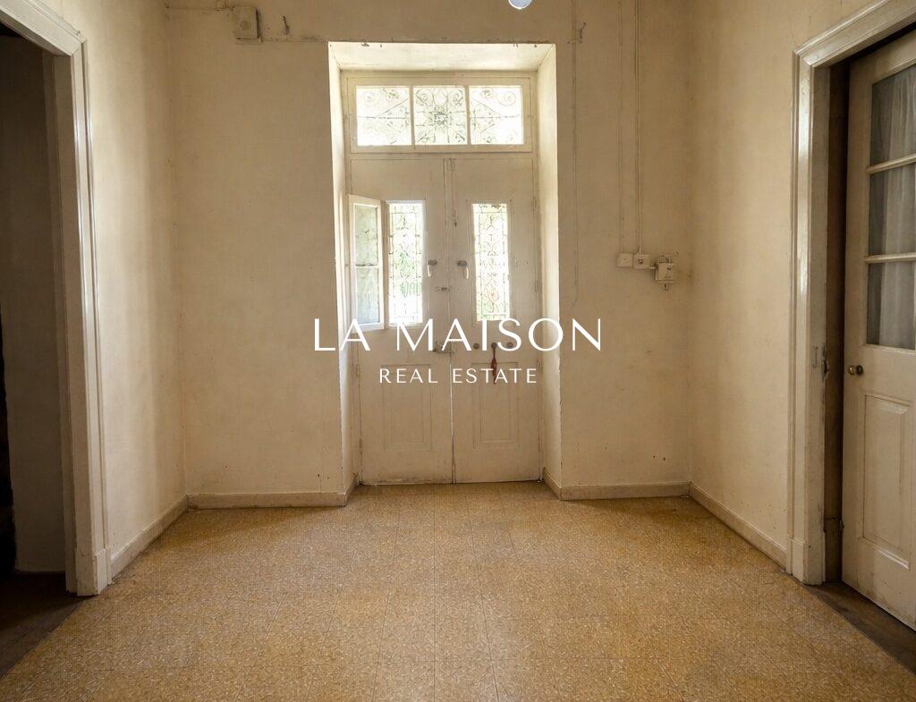 The residence sits on a generous and privileged plot of 850 sq.m., offering a high level of privacy. The listed traditional house is not renovated and requires full restoration. Internally, it comprises four spacious bedrooms, a kitchen, a bathroom, and a dining area, preserving the authentic architectural elements of its era.