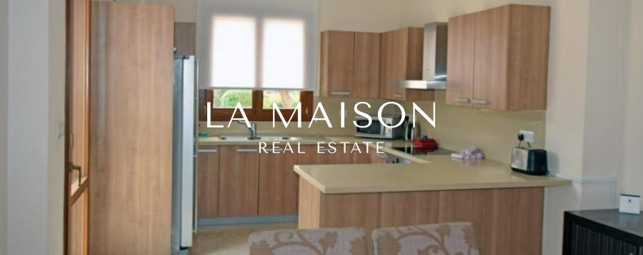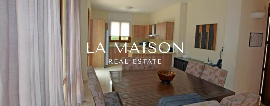 This three-bedroom bungalow is located within the prestigious Aphrodite Hills Golf Resort & Spa in Kouklia Municipality, Paphos District. The house has a total covered area of 215 sqm (covered verandas included) and a total land area of 1.563sqm. It comprises an open area accommodating living room, dining room and kitchen, guest toilet and two bedrooms, a bathroom, an en-suite master bedroom, and an uncovered veranda of 15 sqm. There is also a basement with a storage room (used as a bedroom), a boiler room, and a shower. The bungalow also includes a private overflow swimming pool, barbecue area, landscaped garden, and uncovered parking place. Aphrodite Hills is a well known residential and golf resort and includes villas, apartments, a hotel, spa, restaurants, a mini market, and sports facilities including a swimming pool and 18 hole golf course. The residential complex is approximately 15km from Kouklia and has easy access to the motorway.