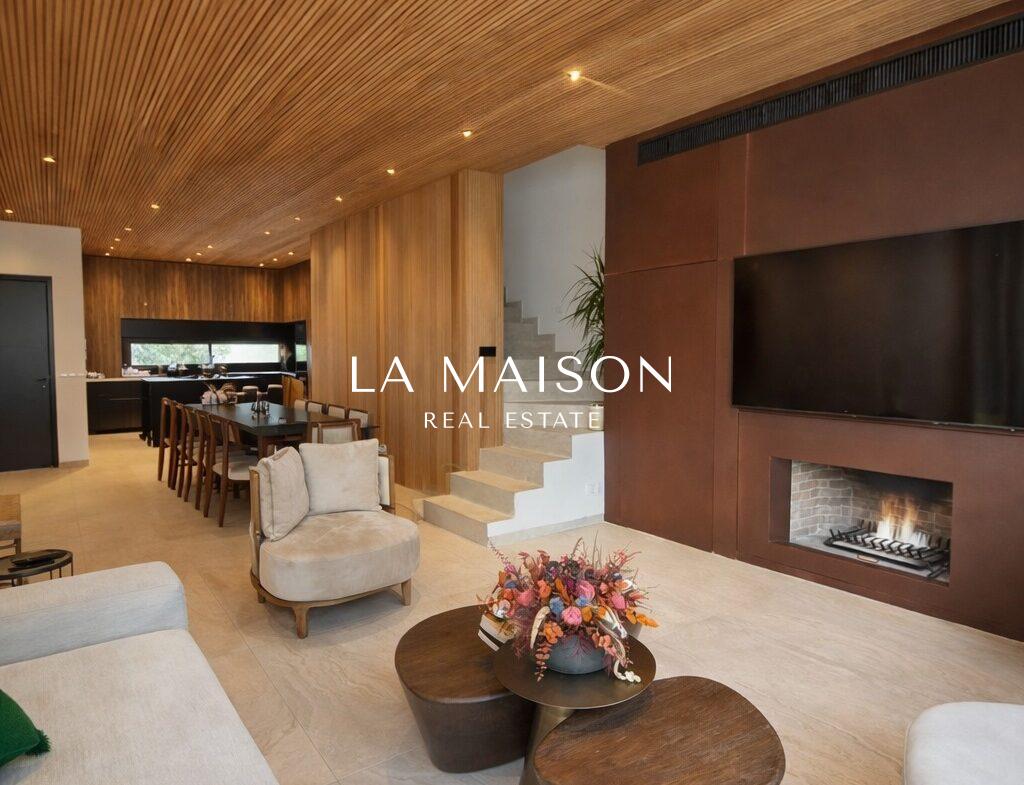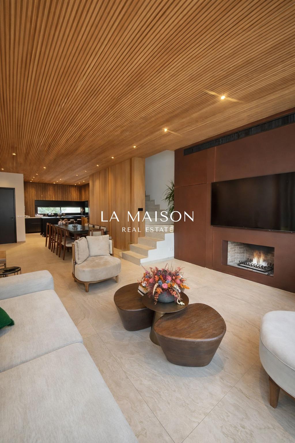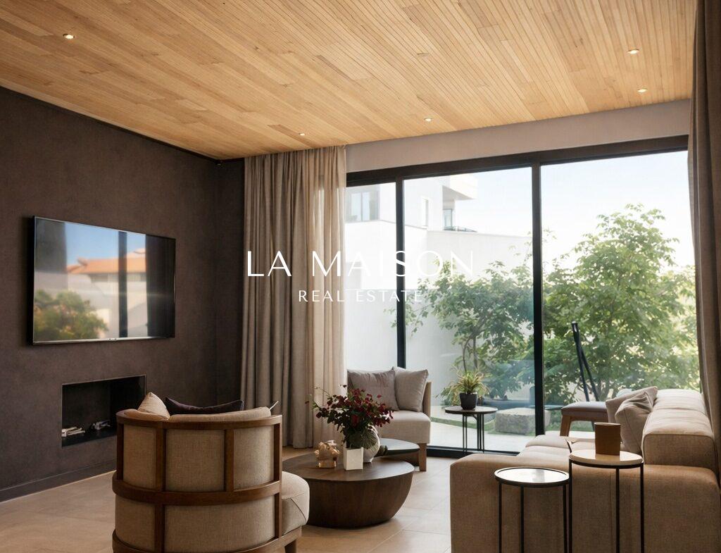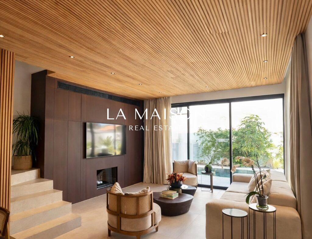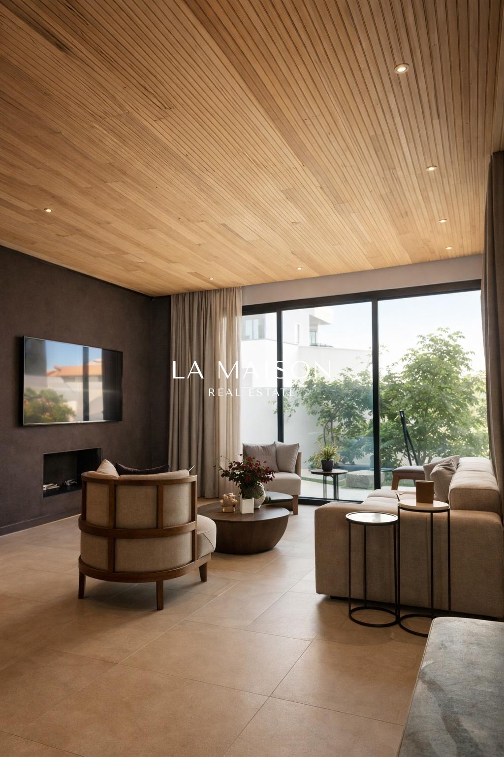 Spanning 167 m² of meticulously curated internal space, the property is defined by its voluminous high ceilings and bespoke craftsmanship. The interior atmosphere is elevated by custom ceiling features finished in premium Swedish thermo-treated wood, which perfectly complements the ambient hidden lighting and sleek central fireplace. Every detail has been executed to the highest specifications, ensuring a true turn-key experience for the discerning homeowner.