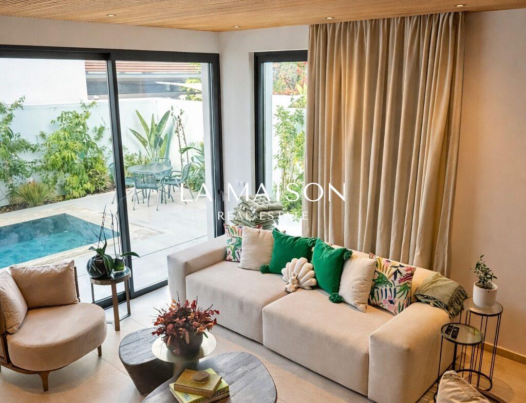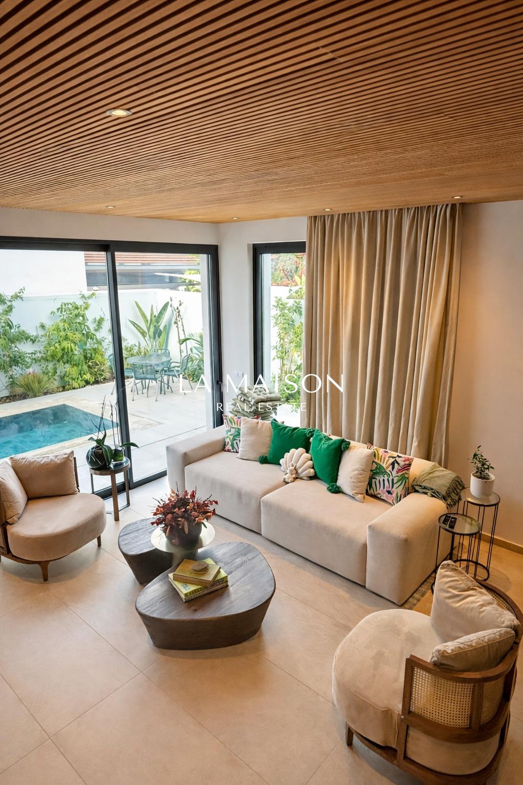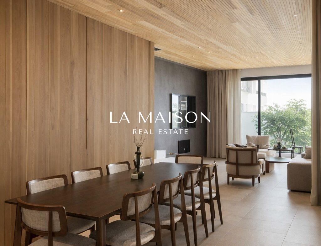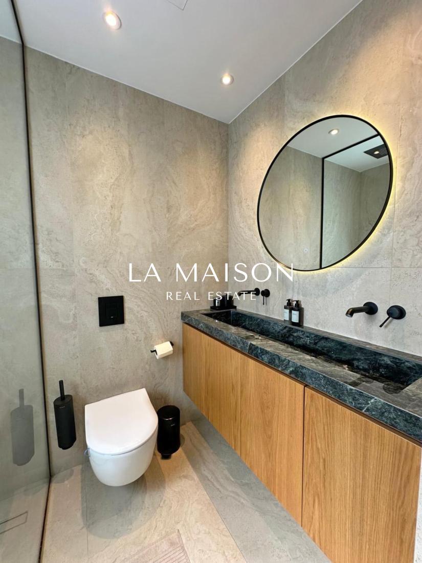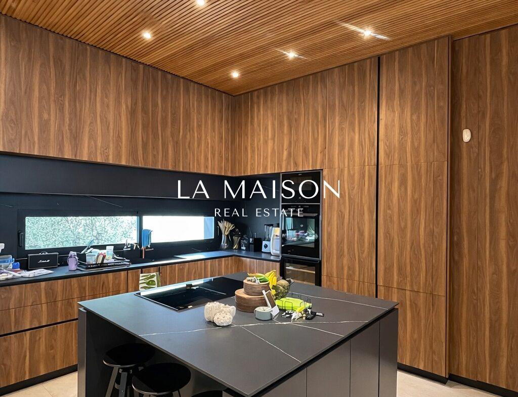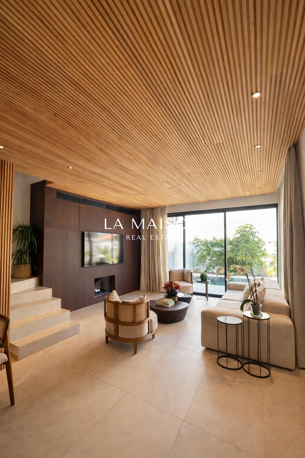 Spanning 167 m² of meticulously curated internal space, the property is defined by its voluminous high ceilings and bespoke craftsmanship. The interior atmosphere is elevated by custom ceiling features finished in premium Swedish thermo-treated wood, which perfectly complements the ambient hidden lighting and sleek central fireplace. Every detail has been executed to the highest specifications, ensuring a true turn-key experience for the discerning homeowner.