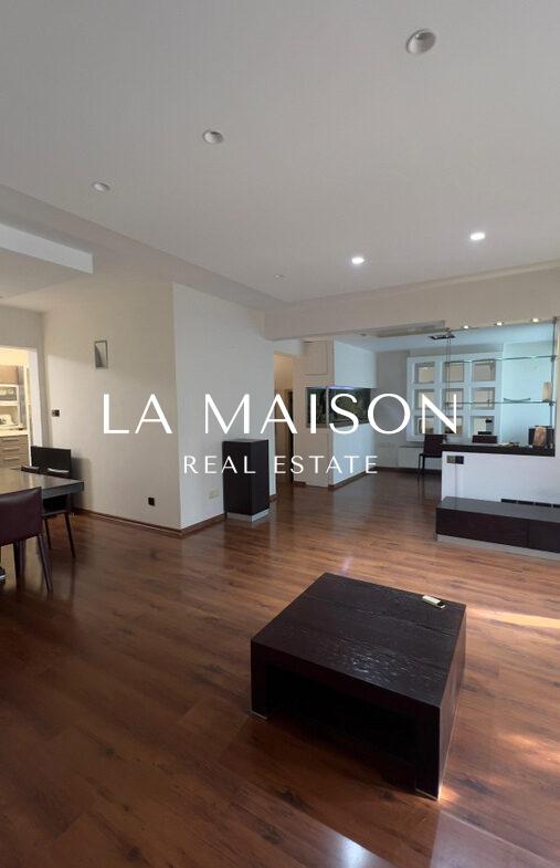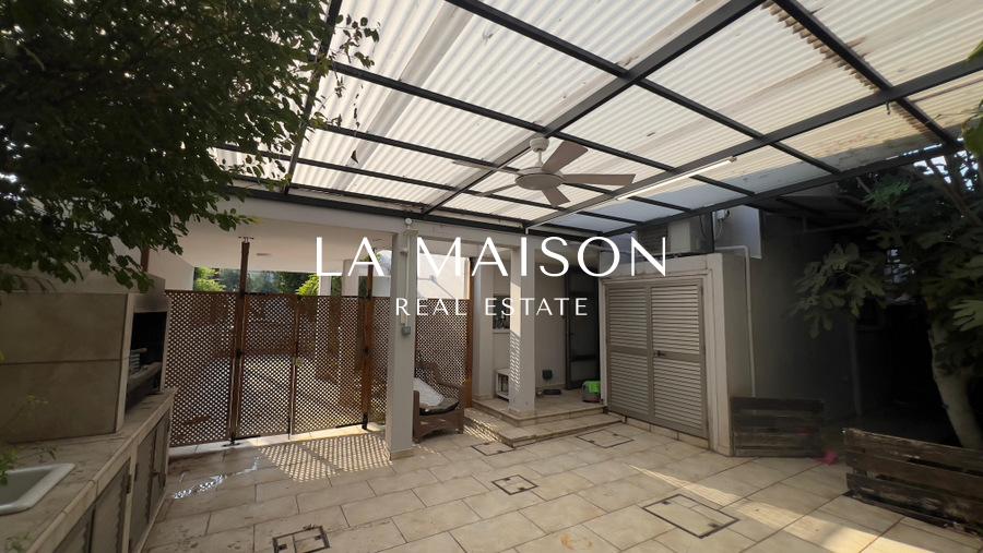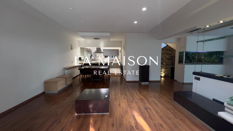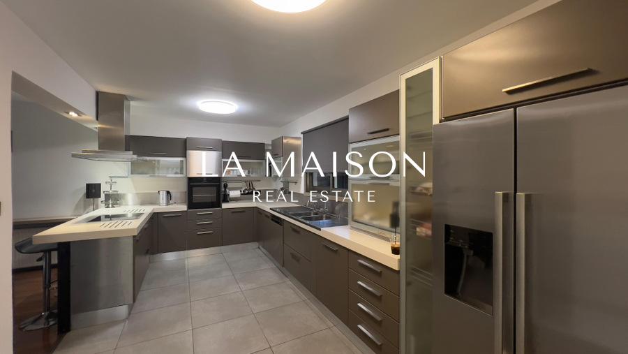 The property offers 195 sq.m. of internal covered areas, a separate fully equipped kitchen, and a modern open-plan living and dining space.