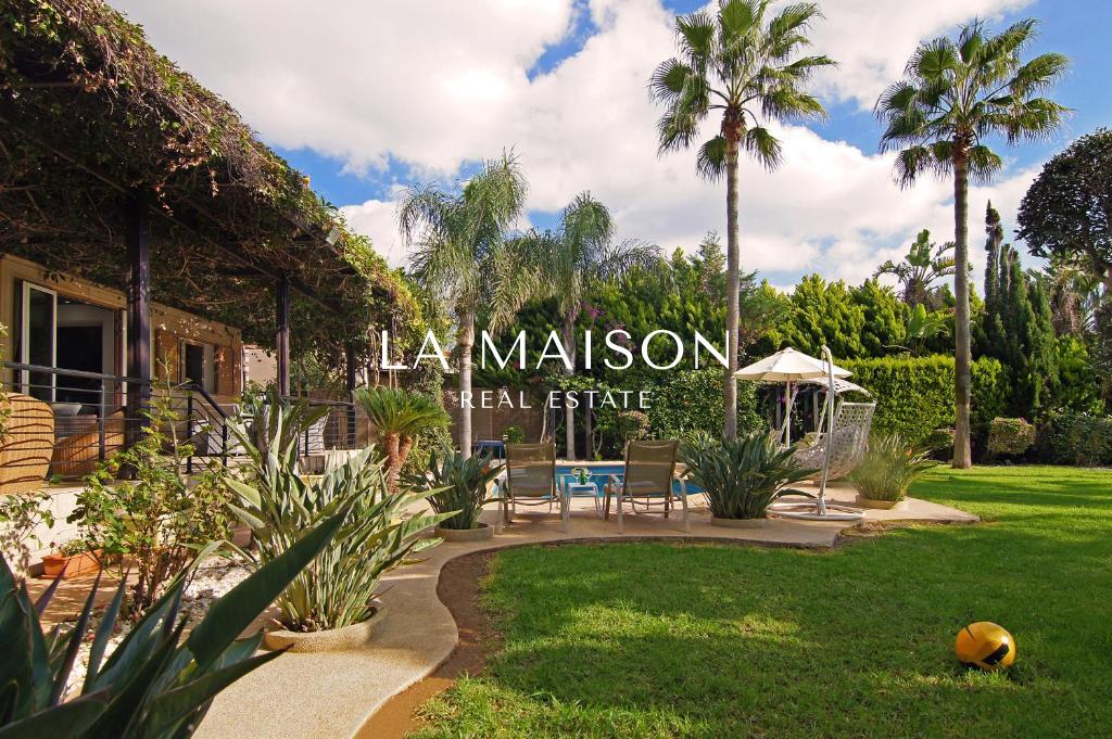✅ Fully landscaped garden with decorative plants and palm trees
