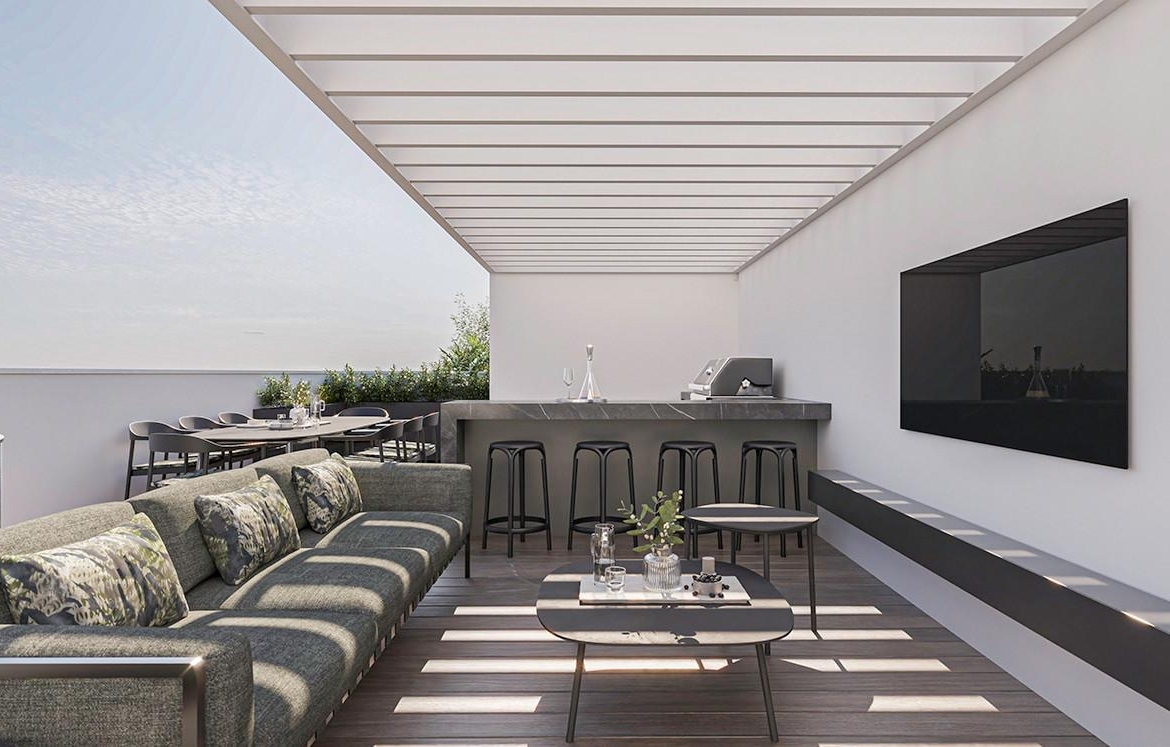 Discover modern living in this stylish two-bedroom apartment. Nestled amidst houses and villas and adjacent to a picturesque park, this home provides a tranquil lifestyle just 2km from the sea. The apartment boasts spacious interiors and a private balcony, ideal for relaxing or entertaining. Residents can also enjoy the convenience of a private swimming pool and easy access to the highway, offering the perfect combination of comfort and accessibility.