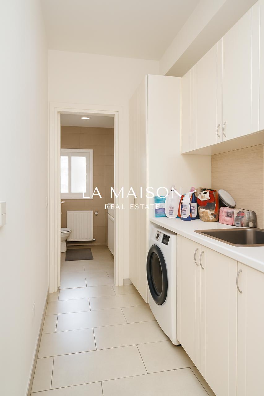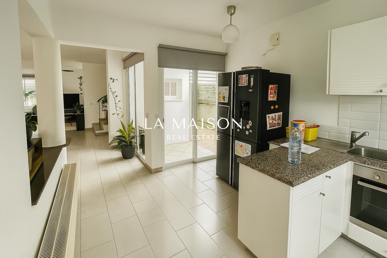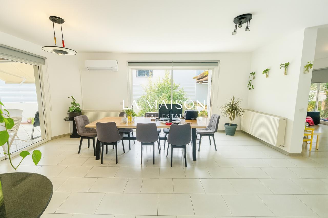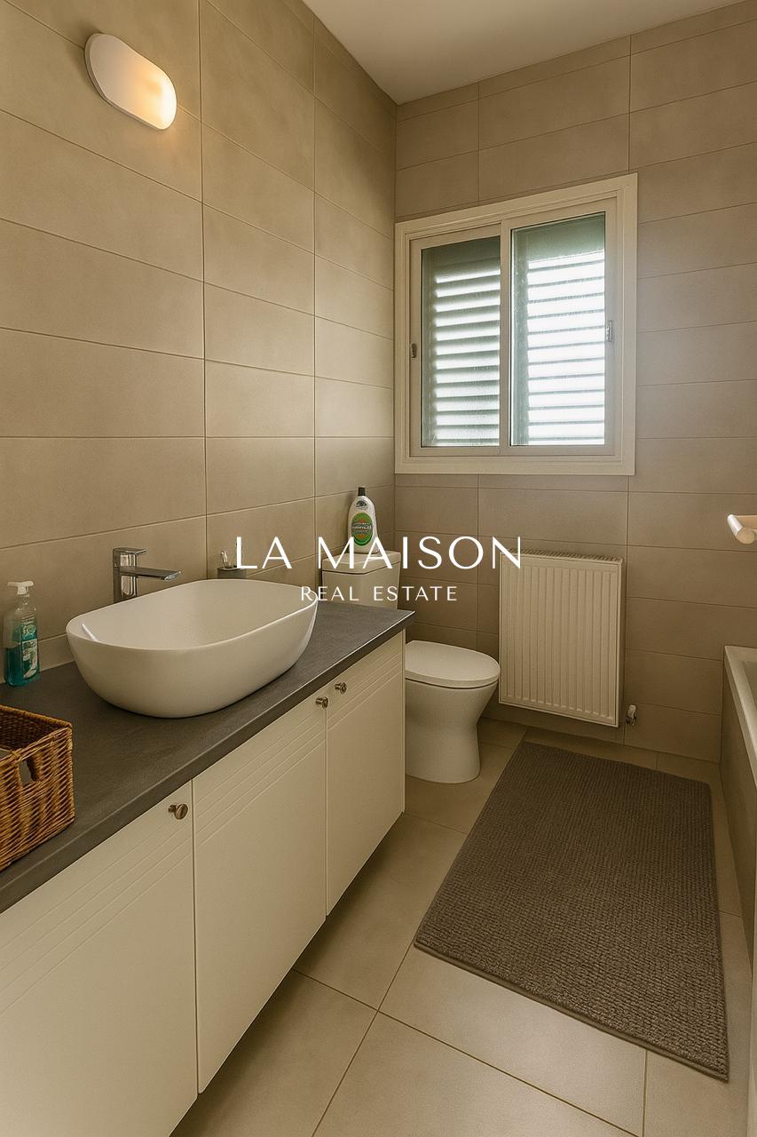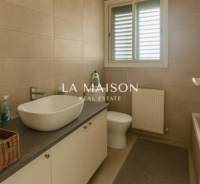 This beautifully maintained three-bedroom detached home in the heart of Strovolos offers a rare combination of elegance, comfort, and prime location. Thoughtfully designed for modern living, it boasts a spacious 210m² interior with an open-plan layout that seamlessly connects the living and dining areas, creating a warm and inviting atmosphere. High-quality finishes, including granite countertops, laminate wardrobes, and ceramic flooring, add a touch of sophistication, while the master bedroom features an en-suite bathroom for added privacy and convenience.