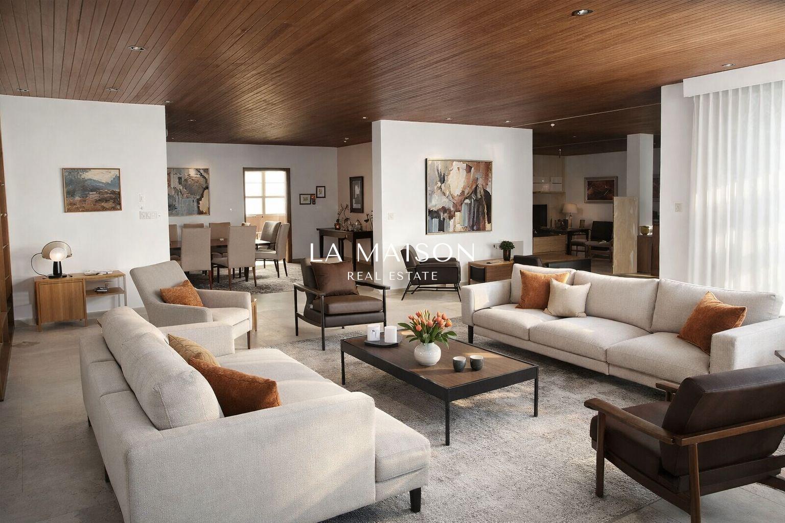 Located in Ayios Andreas, the most prestigious residential area of Nicosia, surrounded by mature gardens and just a 3-minute drive from the city centre, this exceptional 360 sq.m. upper residence offers a rare combination of architectural pedigree, space, and refined living.