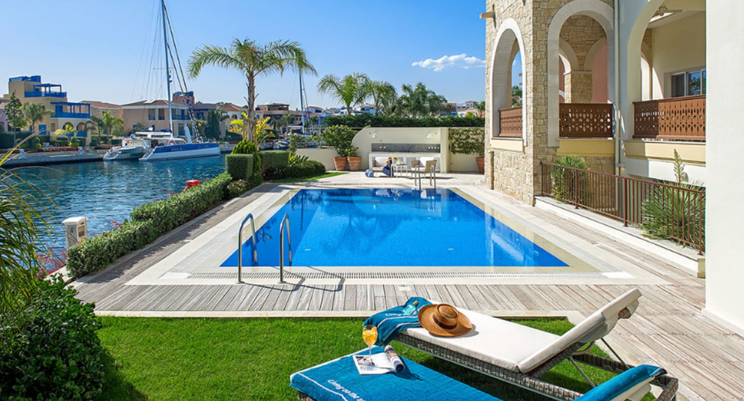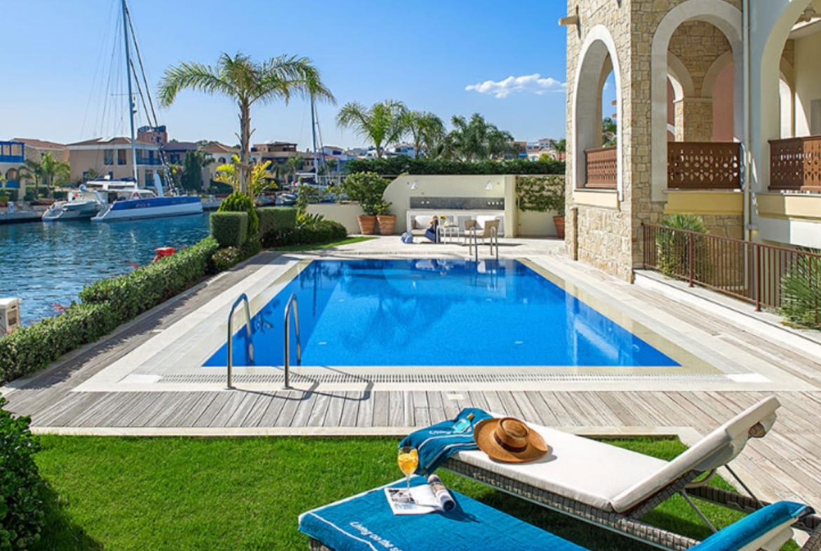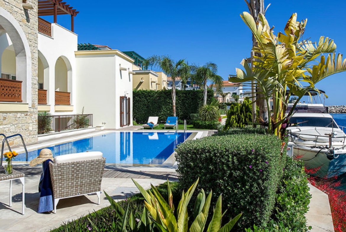 Enjoy living on the sea in a private luxury home with unimpeded views of the Marina and the Mediterranean.