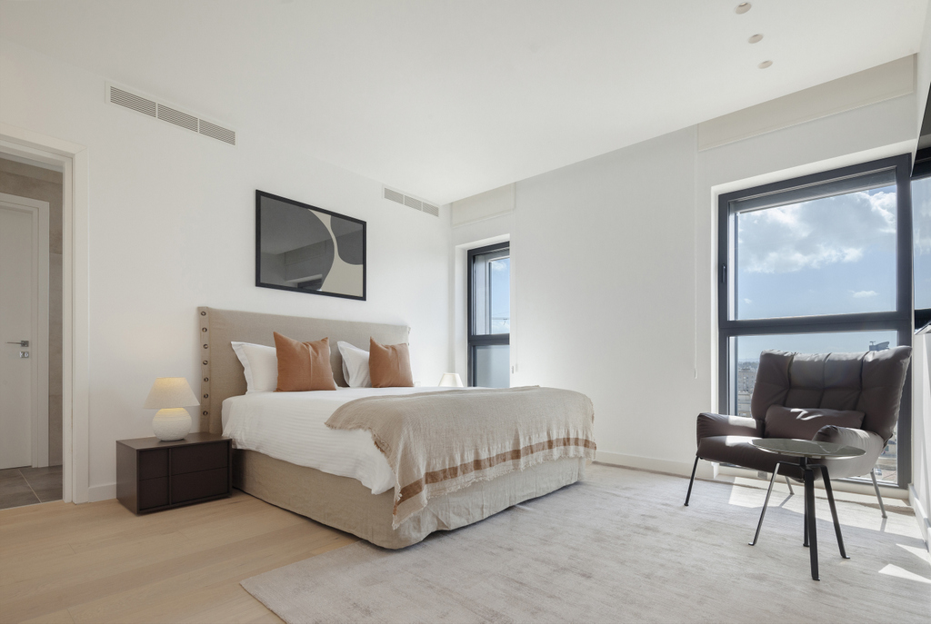 The apartment boasts high-quality finishes, modern conveniences, and large windows that provide stunning views of the city.