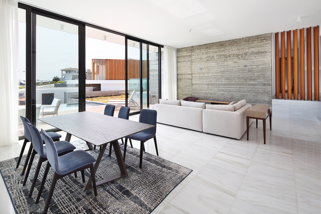 The designs create the ideal environment for Mediterranean life by fusing contemporary architecture with organic elements like wood, stone, and marble.