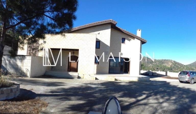 The property located in the community of Lythrodontas, on a hill with panoramic views. The ground floor comprises of a kitchen, living room, two fireplaces and bathroom while the first floor comprises of four bedrooms all en-suite (total of 200m2). Verandas covered (84m2) and uncovered (11m2). Plot (6,027m2).
