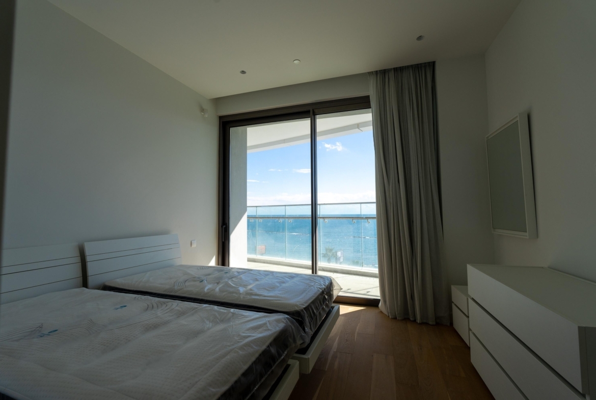 This world-class seafront development in coastal Limassol, Cyprus, offers breathtaking sea views from all apartments. The landmark complex features luxury residences with in-house services, concierge, exceptional facilities, and a high-end shopping and dining plaza. Showcasing architectural originality and a cosmopolitan personality, the development boasts extensive sea frontage. Each apartment provides uninterrupted sea views from spacious verandas, with full-height glazing seamlessly merging the interior with the exterior, enhancing the sense of space.