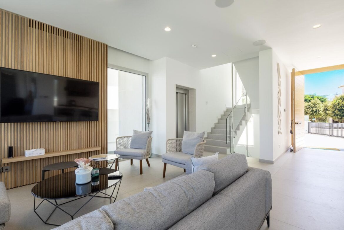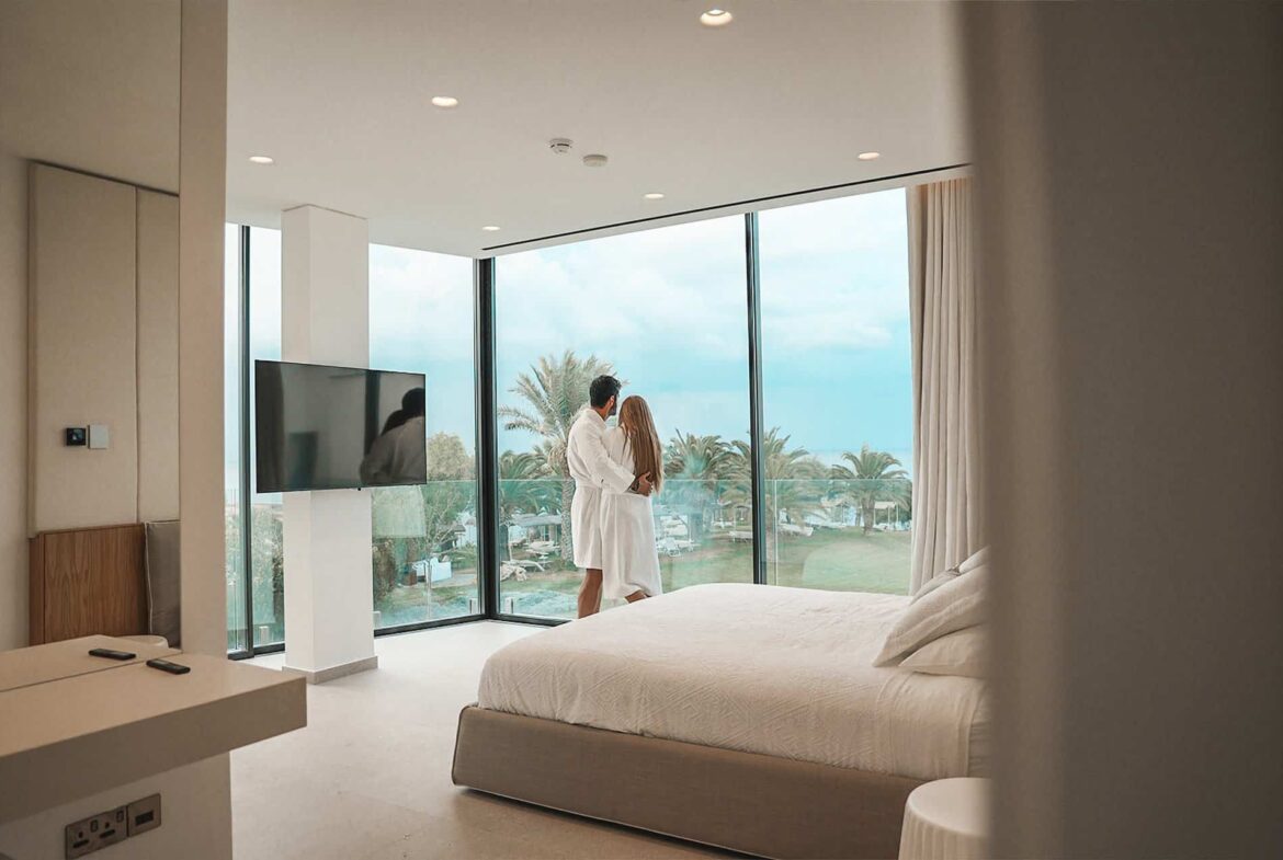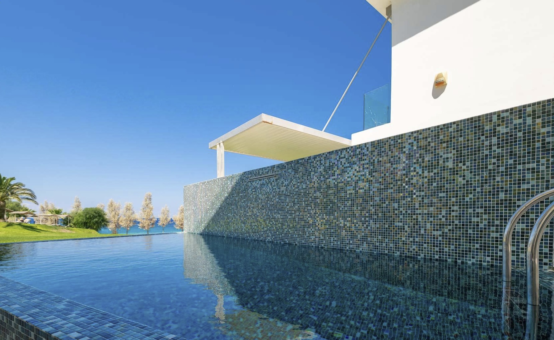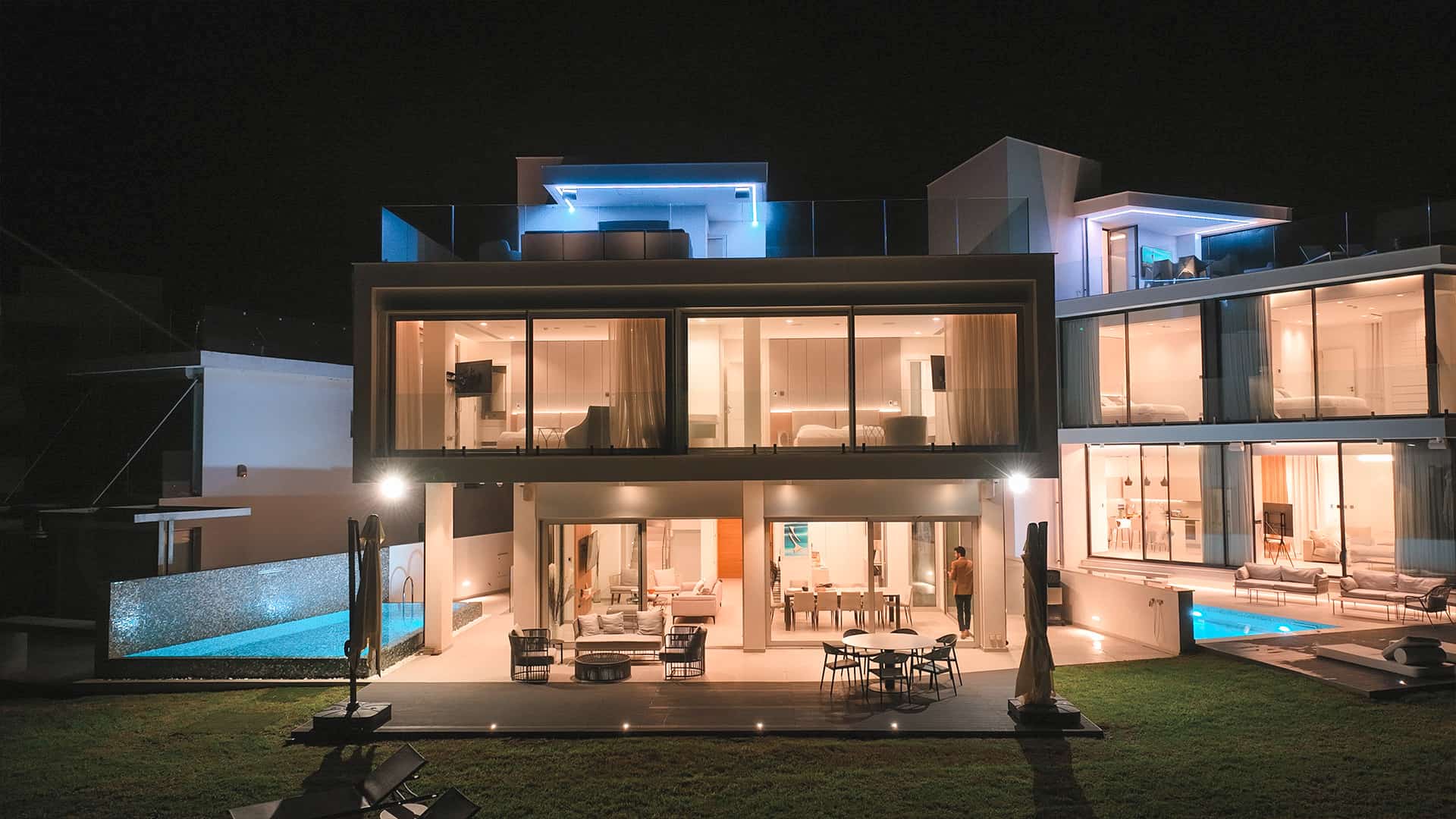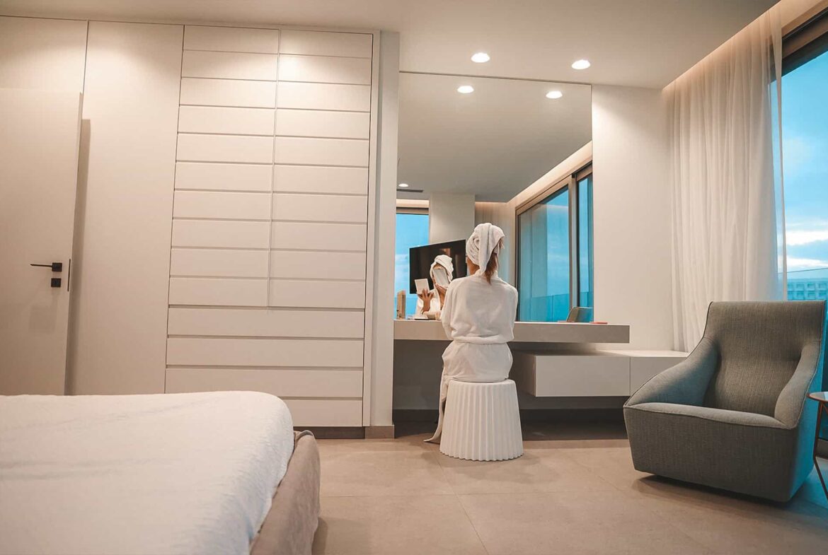 Are you longing for a home right on the beach, with turquoise Mediterranean waves just meters from your bedroom, offering a picture-perfect view? Do you have a love for contemporary architecture and cutting-edge technology? Are you particular about the quality and ambiance of your living environment? If so, you should consider arranging a viewing of this seafront villa in Protaras, a highly desirable resort area in Cyprus. Located in a boutique villa complex on the front line, it provides stunning panoramic sea views.