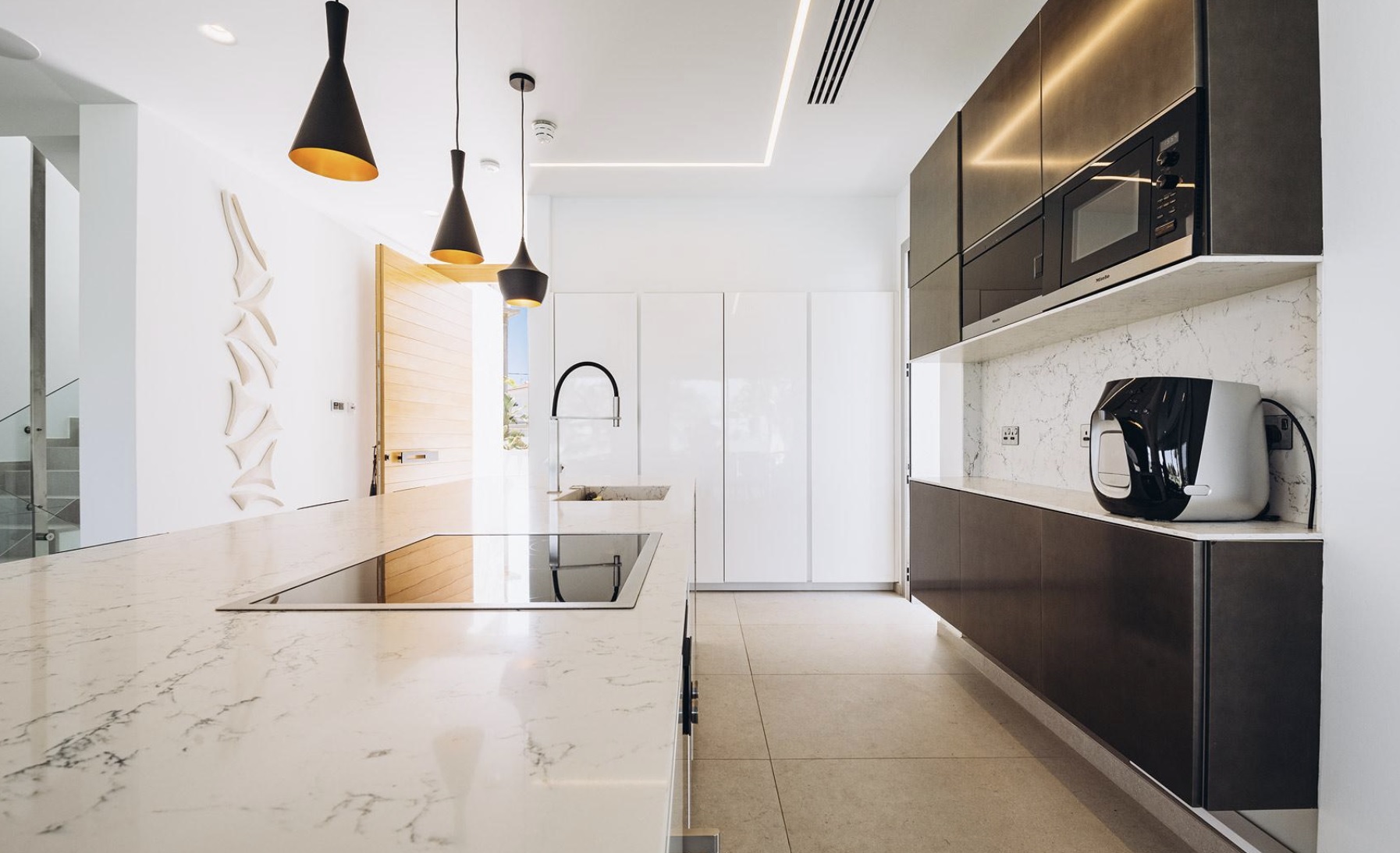 This villa is outfitted with a “smart home” system, Italian kitchen and furniture, concealed A/C units, indoor and outdoor speakers, a security system, a heated swimming pool, and much more. It is truly a must-see.