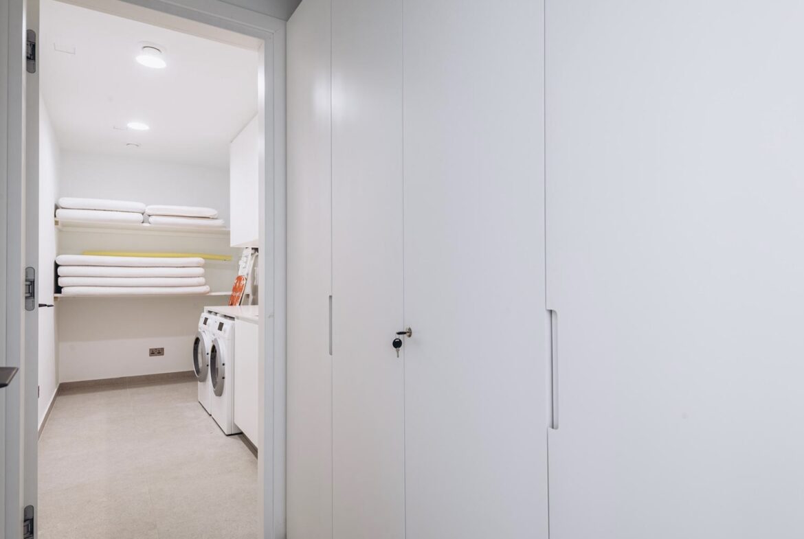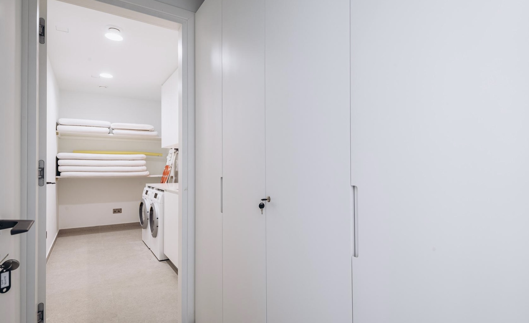 The lower level consists of three en-suite bedrooms, a service/laundry room, and a plant room. The ground floor features an open-plan kitchen, dining, and living area with panoramic sliding doors that lead to the pool deck and garden. The first floor has three additional spacious en-suite bedrooms. The top floor boasts a beautiful roof garden with a TV and sitting area, Jacuzzi, kitchenette, washroom, and, of course, unmatched sea views.