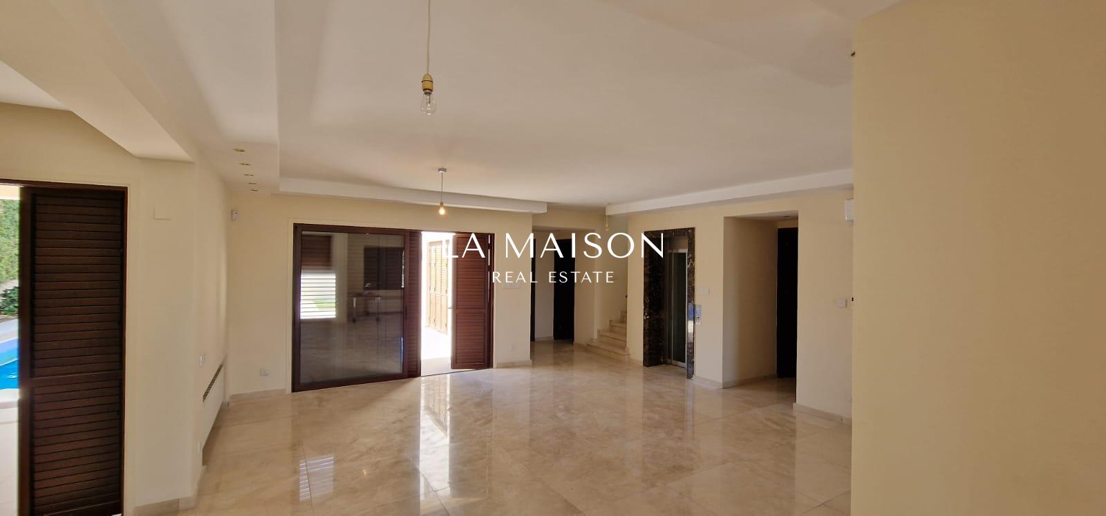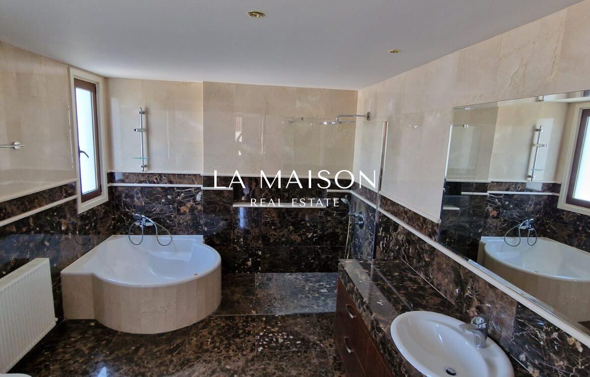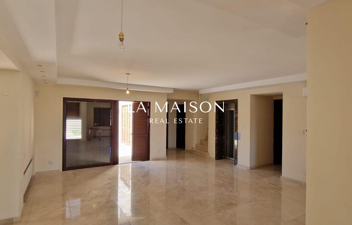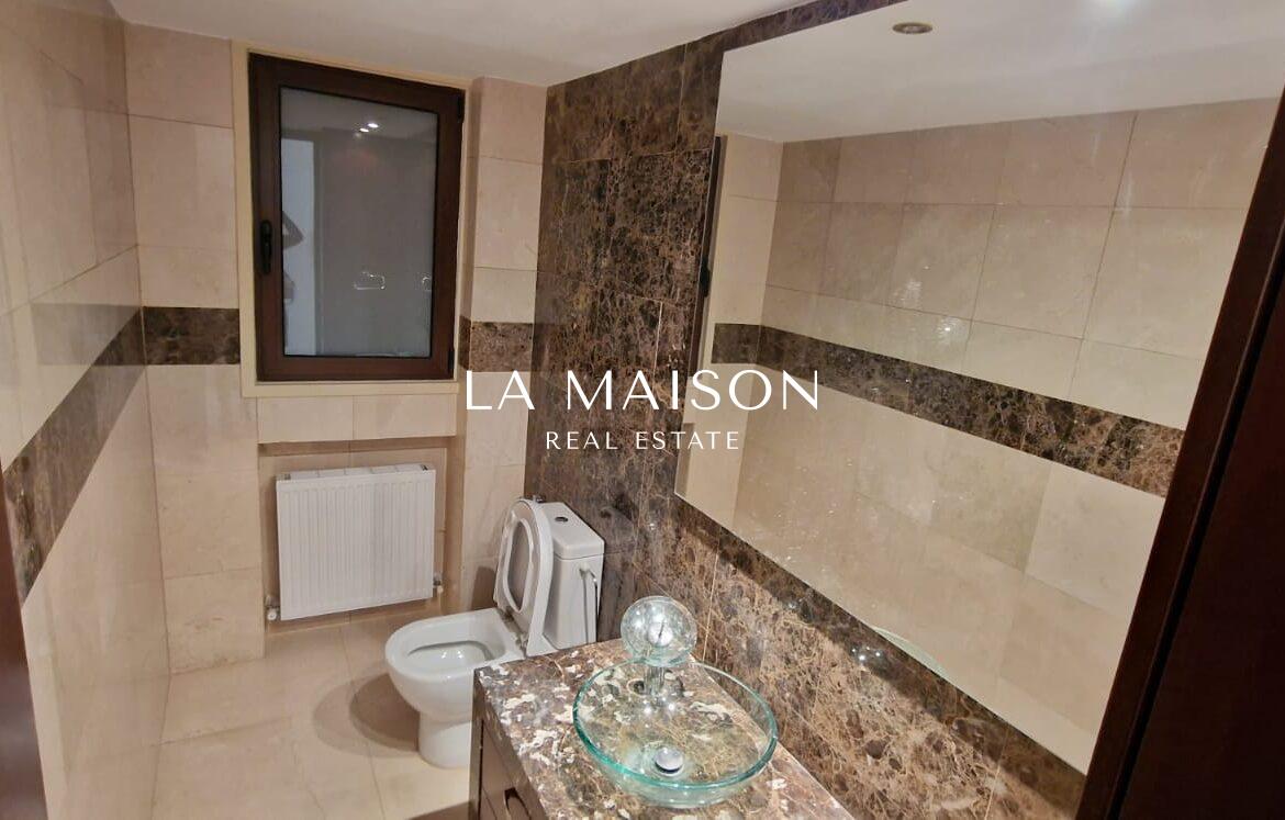 For sale: a beautiful 4-bedroom home in a peaceful neighborhood, featuring a pool and garden, located in a prime area close to schools, shops, pharmacies, and supermarkets. The property includes a pool, garden, parking for two vehicles, an elevator, a kitchen with built-in appliances, a washer and dryer, air conditioning in every room, central heating with radiators, solar panels for water heating, an intercom, and a security system. The spacious living room opens onto the veranda, with a separate kitchen and seating area. On the second floor, the bedrooms lead out to the veranda, and there is a large, well-organized walk-in closet. The bathrooms feature both showers, a bathtub, and a Jacuzzi. The basement is designed to accommodate a gym, a home cinema, a children’s playroom, or an office. All basement rooms are ventilated and fitted with air conditioning and radiators. There is the option to personalize the decor to suit your taste. The house is move-in ready.