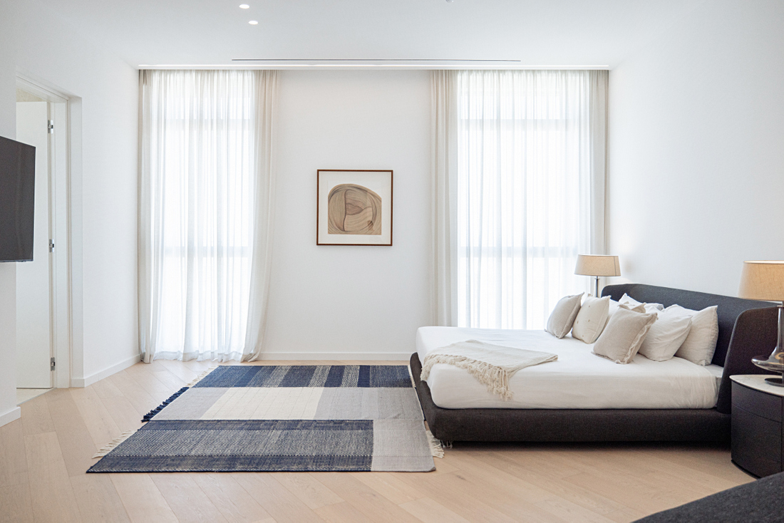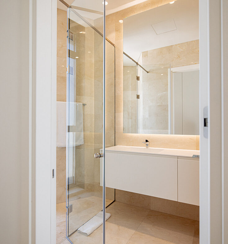 For entertainment, the penthouse includes a private home cinema, featuring a large flat-screen TV and a premium Sonos sound system for a truly immersive experience. A private entrance enhances the sense of exclusivity and security for residents.