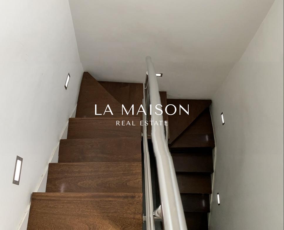• Internal staircase with solid wood steps and metal railing leading to 4th floor